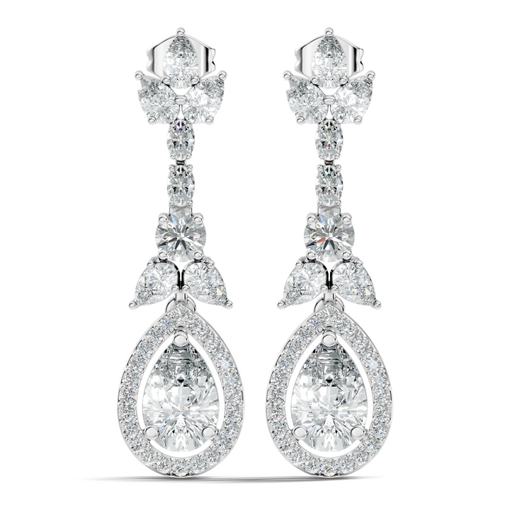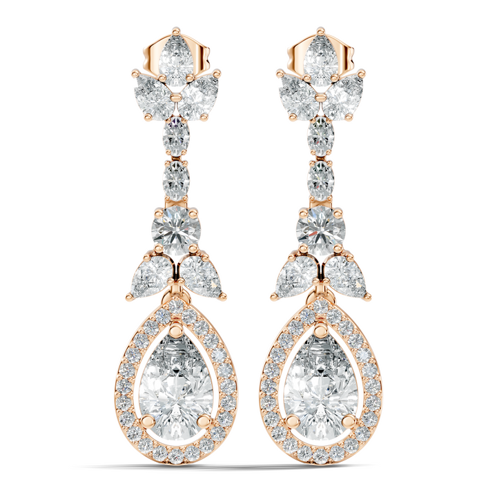 Handcrafted in 10K rose gold, featuring lab-grown round, oval, and pear-cut diamonds, total carat weight 4.80 Ct, drop stud prong setting, friction back studs. Customize any piece in 10K, 14K, or 18K yellow, rose, or white gold, with your choice of lab-grown or natural diamonds where applicable.