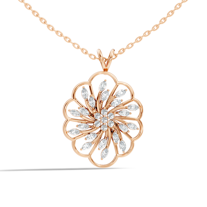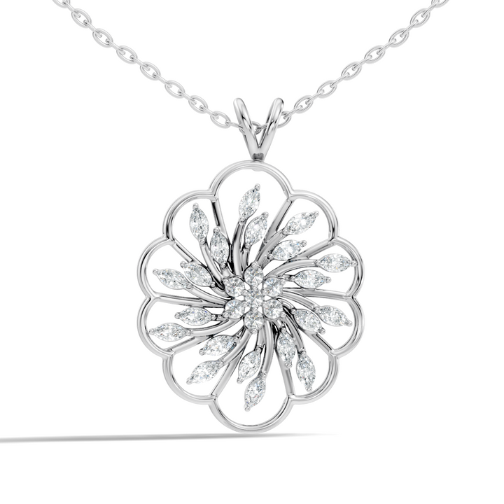 Handcrafted in 10K white gold, featuring lab-grown marquise and round-cut diamonds, total carat weight 1.50 Ct, vintage prong pendant setting, standard chain length 18 inches. Customize any piece in 10K, 14K, or 18K yellow, rose, or white gold, with your choice of lab-grown or natural diamonds where applicable.