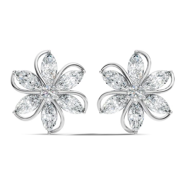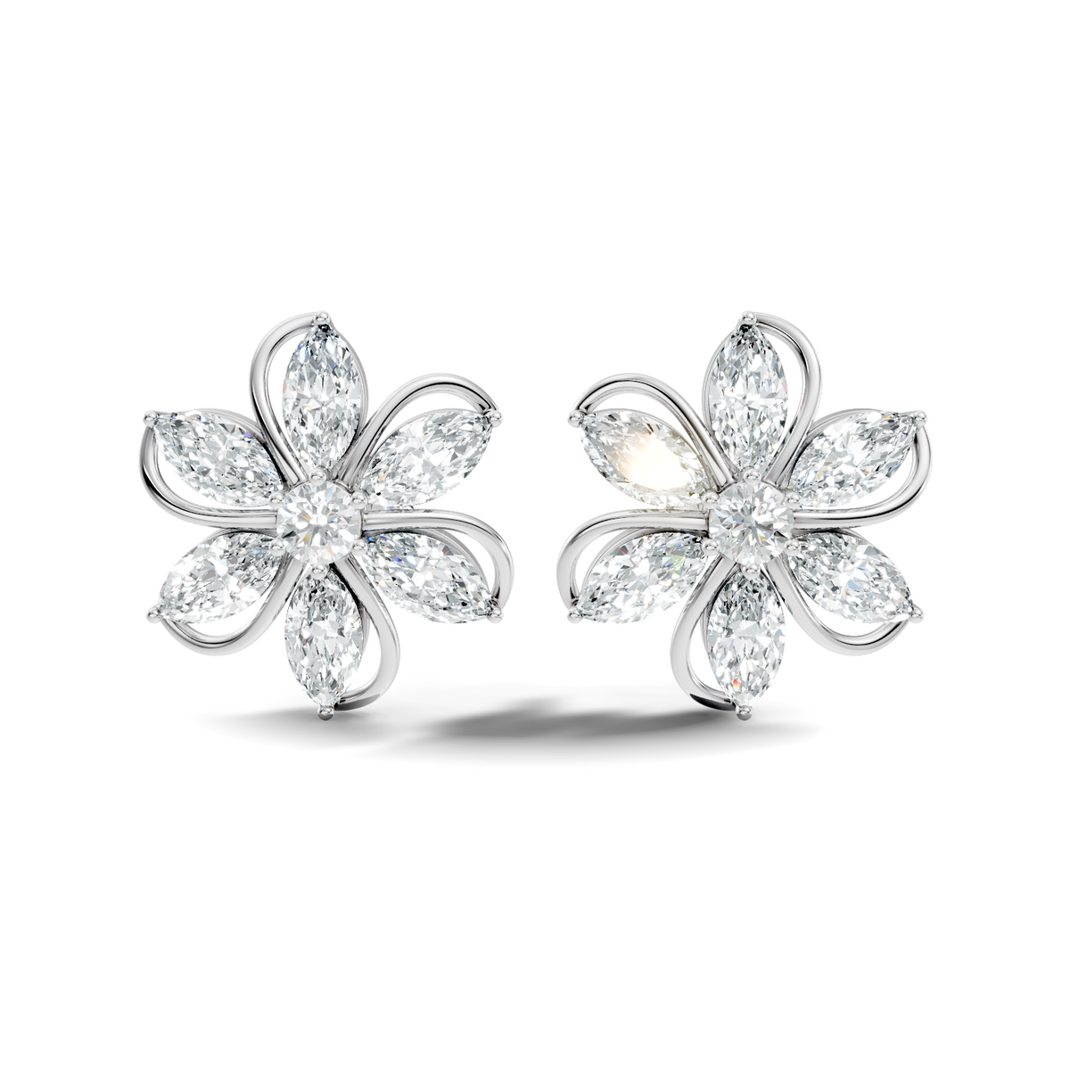 Handcrafted in 10K white gold, featuring lab-grown and natural marquise and round-cut diamonds, total carat weight 2.05 Ct, classic stud prong setting, friction back studs. Customize any piece in 10K, 14K, or 18K yellow, rose, or white gold, with your choice of lab-grown or natural diamonds where applicable.