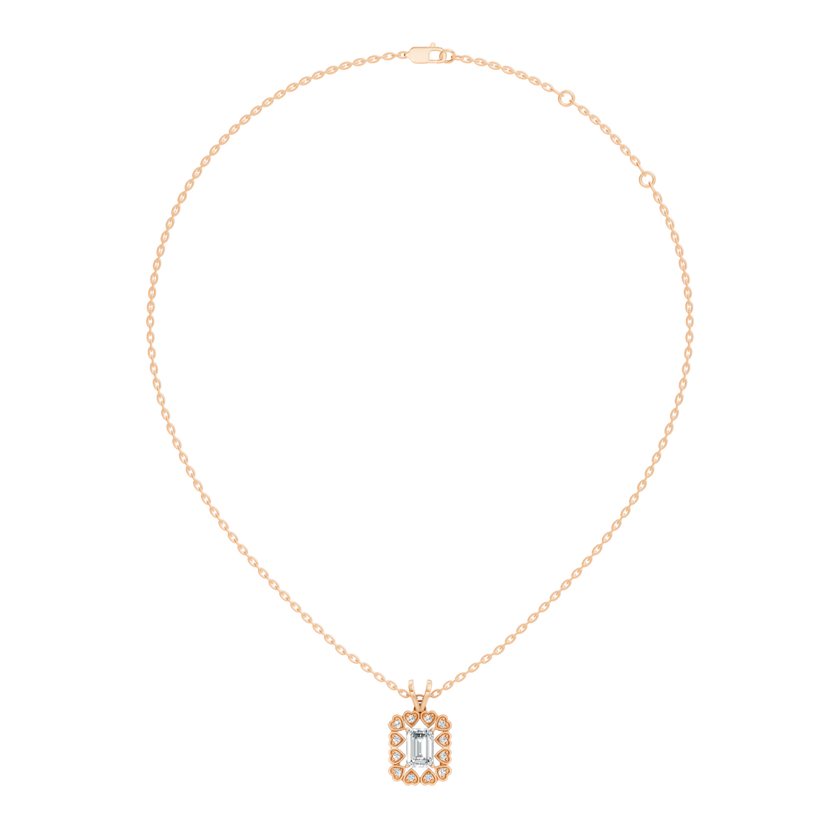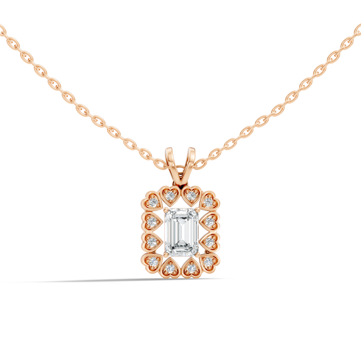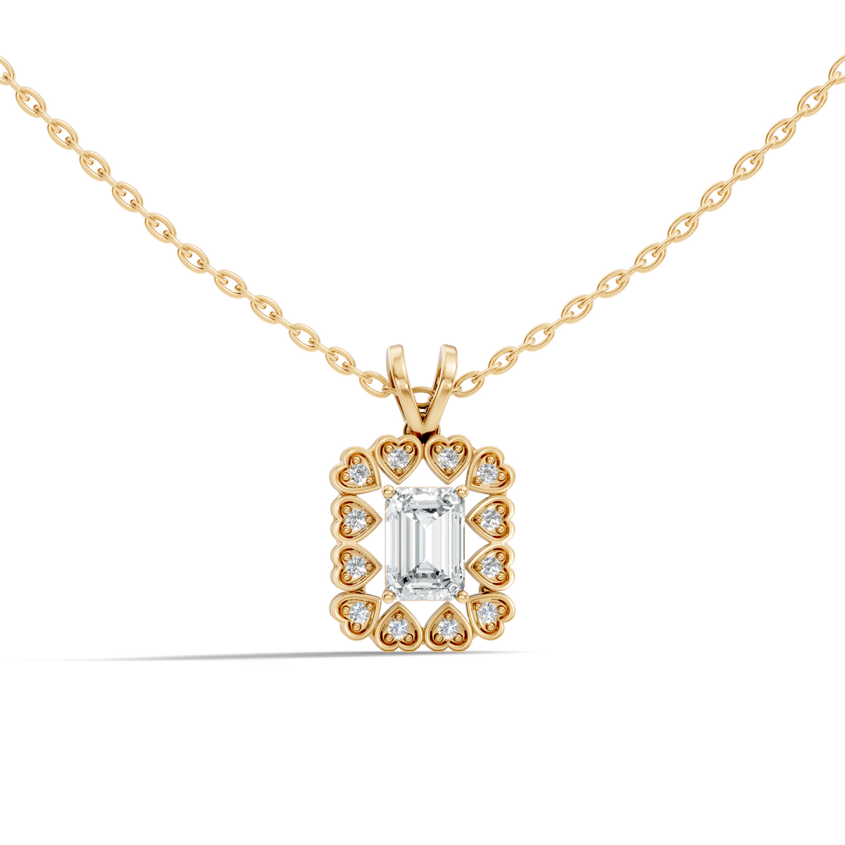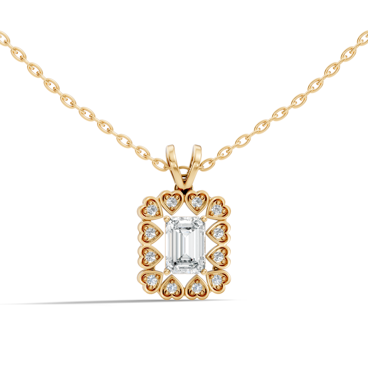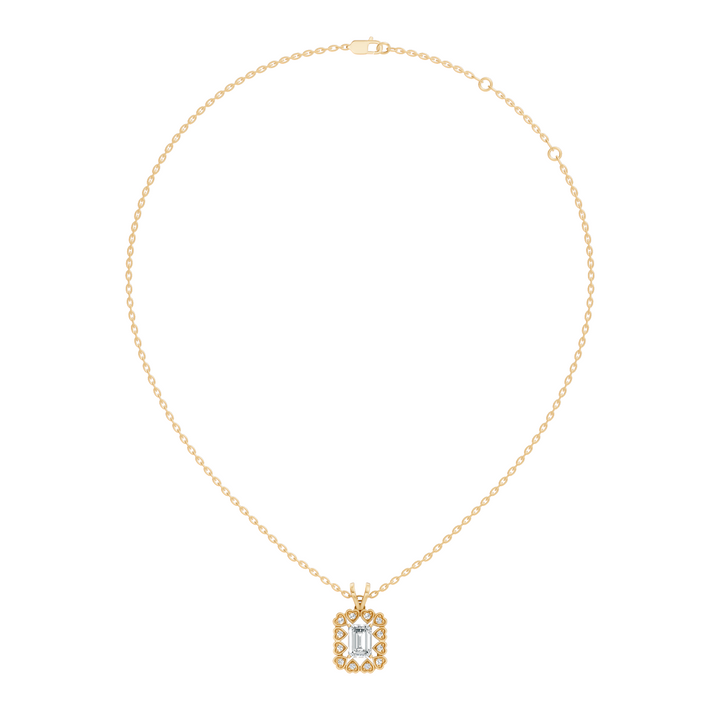 Handcrafted in 10K white gold, featuring lab-grown heart and round-cut diamonds, total carat weight 0.50 Ct, halo prong pendant setting, standard chain length 18 inches. Customize any piece in 10K, 14K, or 18K yellow, rose, or white gold, with your choice of lab-grown or natural diamonds where applicable.