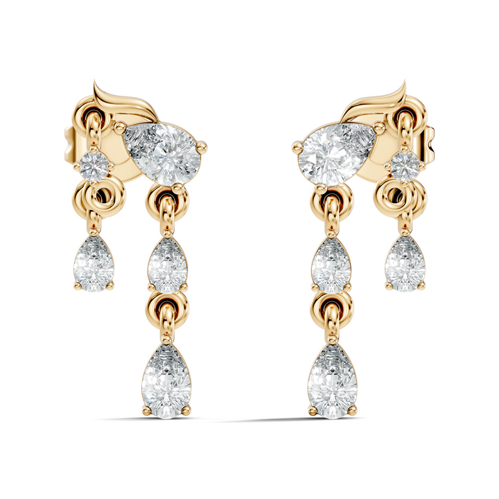 These 3.80Ct Pear-Cut Lab-grown Diamond Earrings by High Carat exude timeless elegance and refined sparkle. Set in 10K white gold, the pear and round-cut diamonds combine lab-grown and natural stones in a delicate vintage-inspired design, perfect for daily wear or special occasions. Lightweight yet radiant, they enhance any ensemble while showcasing the brilliance of high-quality diamonds. Ideal for gifting or personal indulgence, these earrings celebrate sustainable craftsmanship, enduring luxury, and polished sophistication. A versatile and dazzling statement piece, they elevate style effortlessly, offering a harmonious blend of classic design and contemporary elegance.