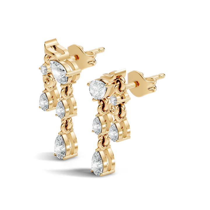 Handcrafted in 10K white gold, featuring lab-grown and natural pear and round-cut diamonds, total carat weight 3.80 Ct, drop stud prong setting, friction back studs. Customize any piece in 10K, 14K, or 18K yellow, rose, or white gold, with your choice of lab-grown or natural diamonds where applicable.