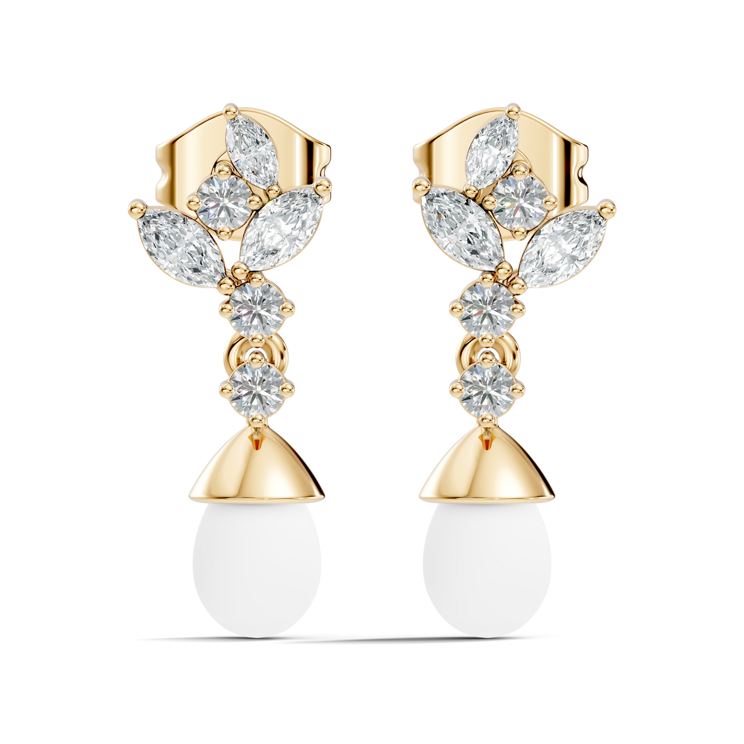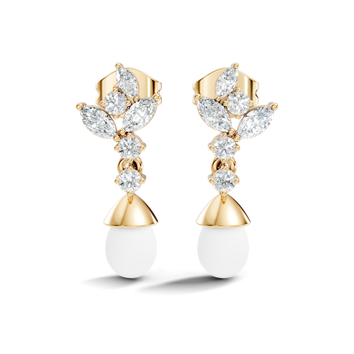 Handcrafted in 10K yellow gold, featuring lab-grown and natural marquise and round-cut diamonds, total carat weight 2.05 Ct, prong-set, post back closure. Customize any piece in 10K, 14K, or 18K yellow, rose, or white gold, with your choice of lab-grown or natural diamonds where applicable.