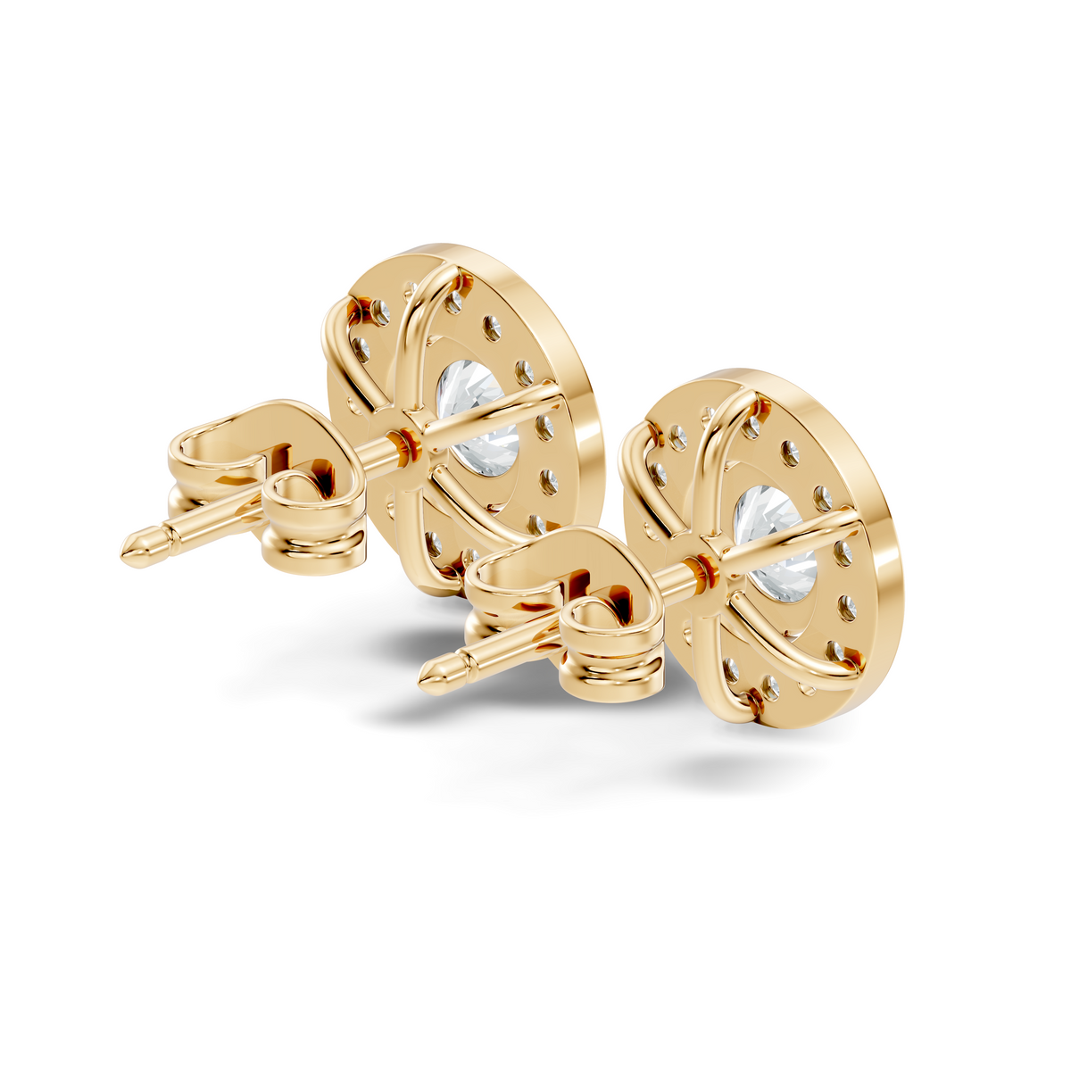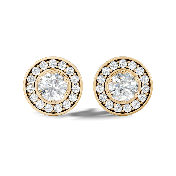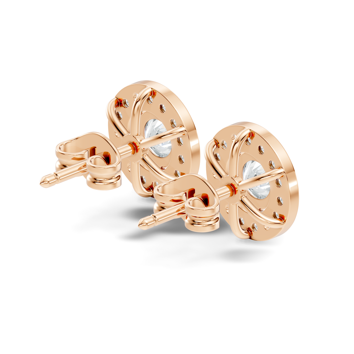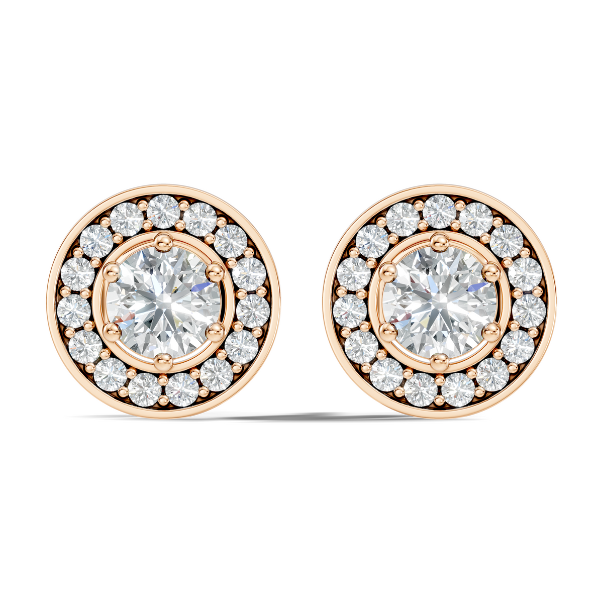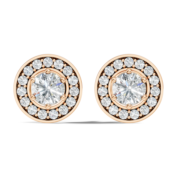 Handcrafted in 10K rose gold, featuring 2.06 Ct lab-grown round-cut diamonds, prong setting, post back closure. Customize any piece in 10K, 14K, or 18K yellow, rose, or white gold, with your choice of lab-grown or natural diamonds where applicable.