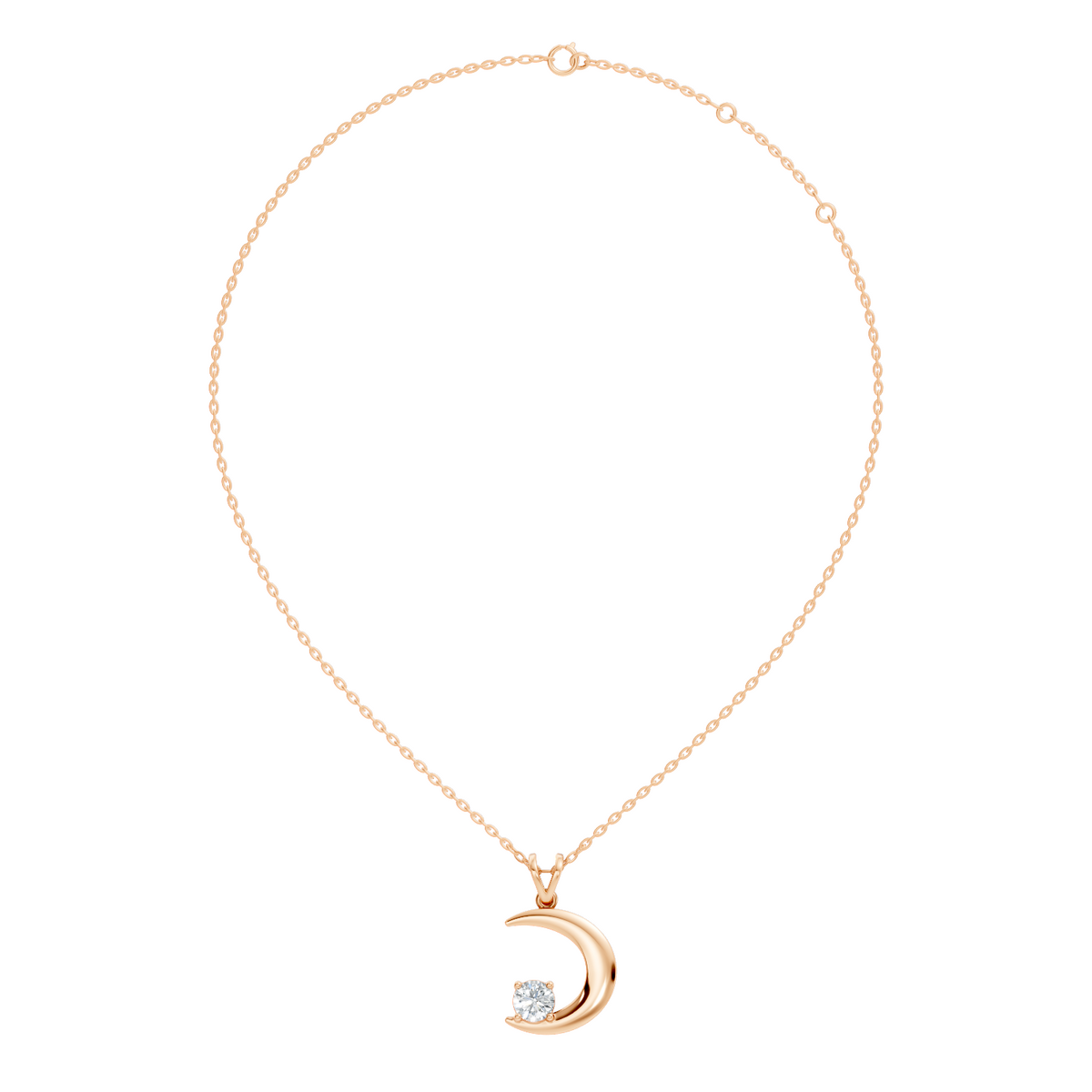 This Lab-grown Diamond Pendant by High Carat captures celestial beauty with its half-moon inspired design. Featuring a 0.43 Ct handmade round lab-grown diamond, this unisex pendant conveys elegance, creativity, and subtle sophistication. Handcrafted in 10K rose gold, it is perfect for daily wear or special occasions, reflecting timeless artistry and versatile charm. Ideal for those who appreciate symbolic and delicate designs, this pendant enhances any outfit with refined sparkle and understated luxury. A harmonious balance of contemporary style and classic elegance, it is a must-have statement piece for a curated jewelry collection seeking meaningful, high-quality jewelry.