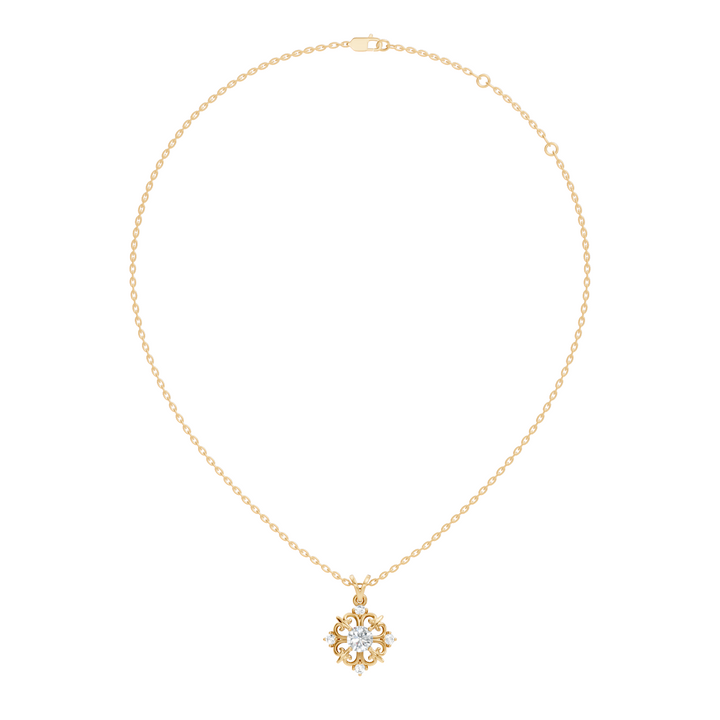 Handcrafted in 10K yellow gold with a 0.65 Ct lab-grown round-cut diamond, polished gold bail for pendant chain attachment, designed for lasting brilliance. Customize any piece in 10K, 14K, or 18K yellow, rose, or white gold, with your choice of lab-grown or natural diamonds where applicable.