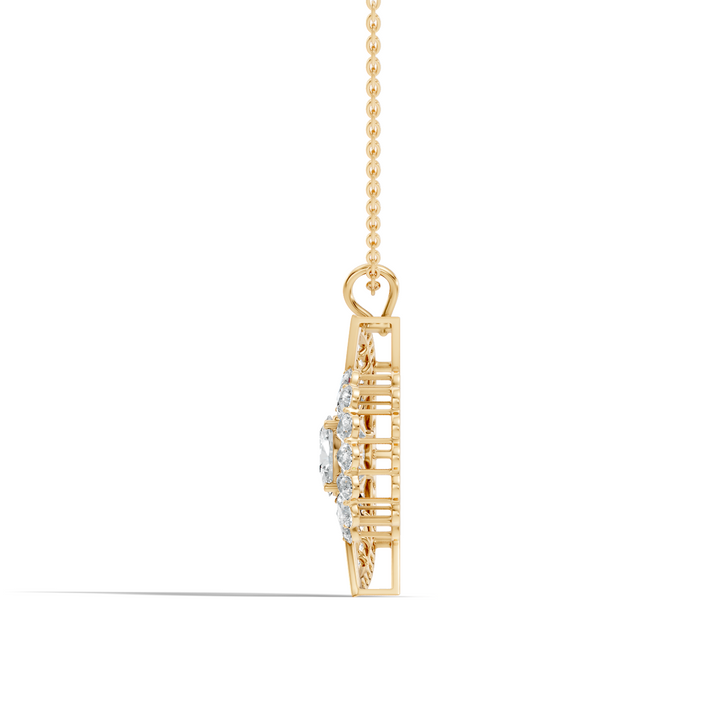 This 5.11Ct Radiant-Cut Lab-grown Diamond Vintage Pendant by High Carat radiates vintage-inspired sophistication. Featuring pear and oval-shaped lab-grown diamonds arranged in a 10K rose gold setting, it exudes luxury and glamour. Perfect for enhancing any outfit for special occasions or daily elegance, this pendant reflects meticulous craftsmanship and high-quality artistry. Its bold yet refined design celebrates timeless beauty, making it a versatile statement piece for a curated jewelry collection. Embodying sophistication, sparkle, and premium quality, this pendant is a luxurious accessory for women who appreciate extraordinary diamonds and ethically crafted jewelry.