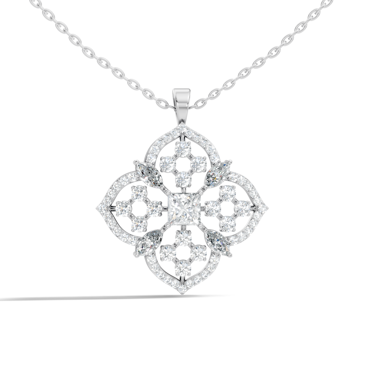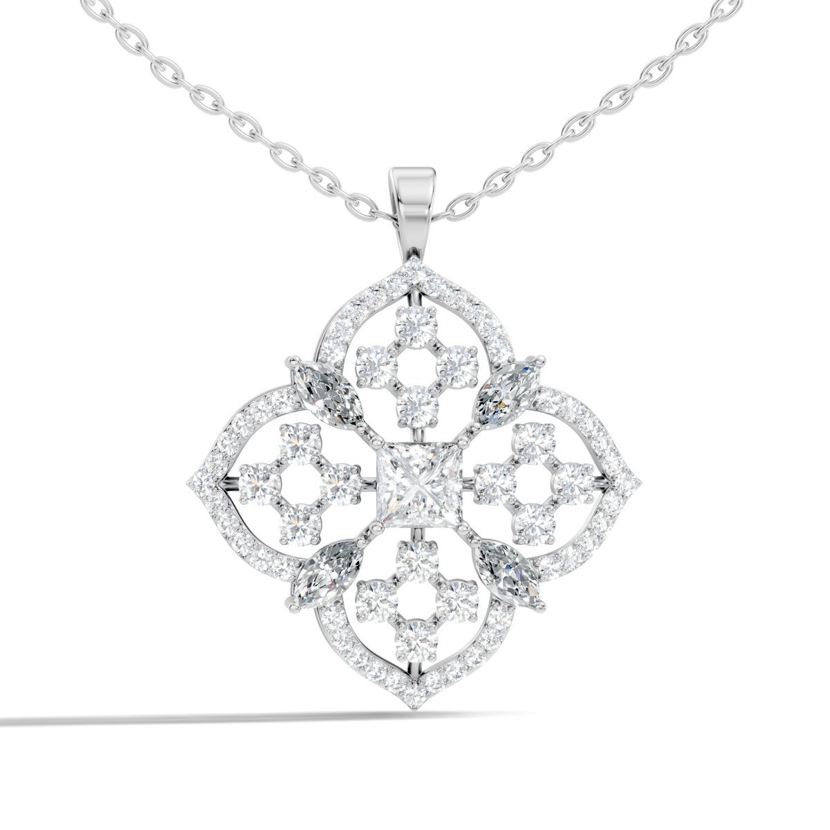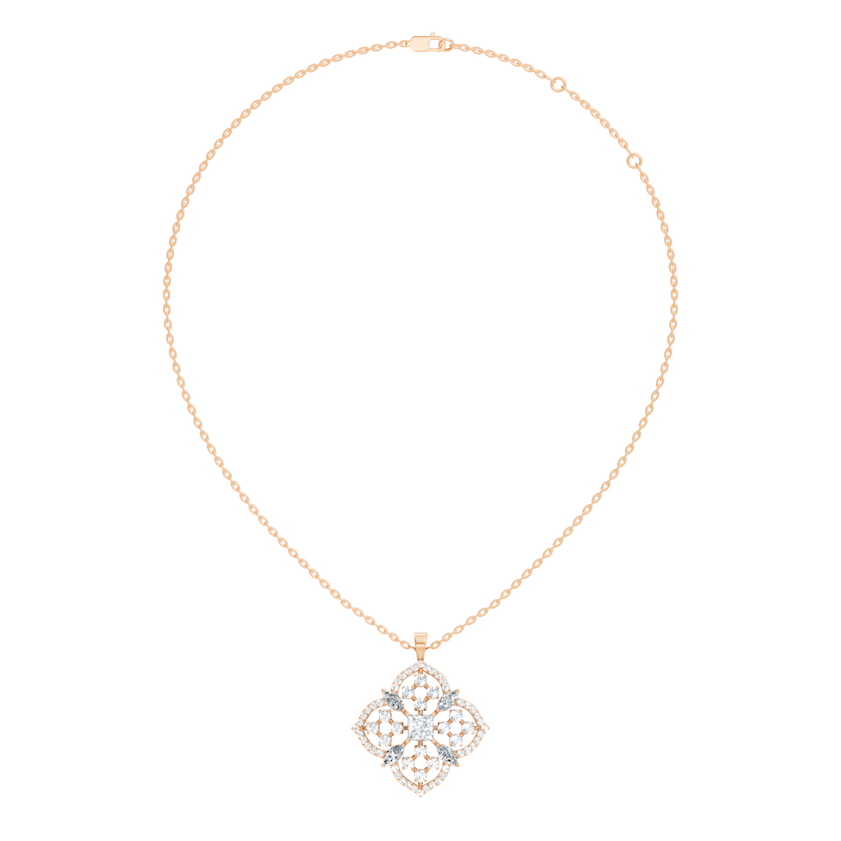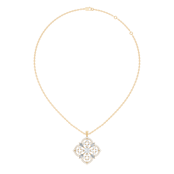 Handcrafted in 10K yellow gold with lab-grown marquise and princess-cut diamonds totaling 5.11 Ct, polished gold bail for pendant chain attachment, designed for durability and lasting sparkle. Customize any piece in 10K, 14K, or 18K yellow, rose, or white gold, with your choice of lab-grown or natural diamonds where applicable.