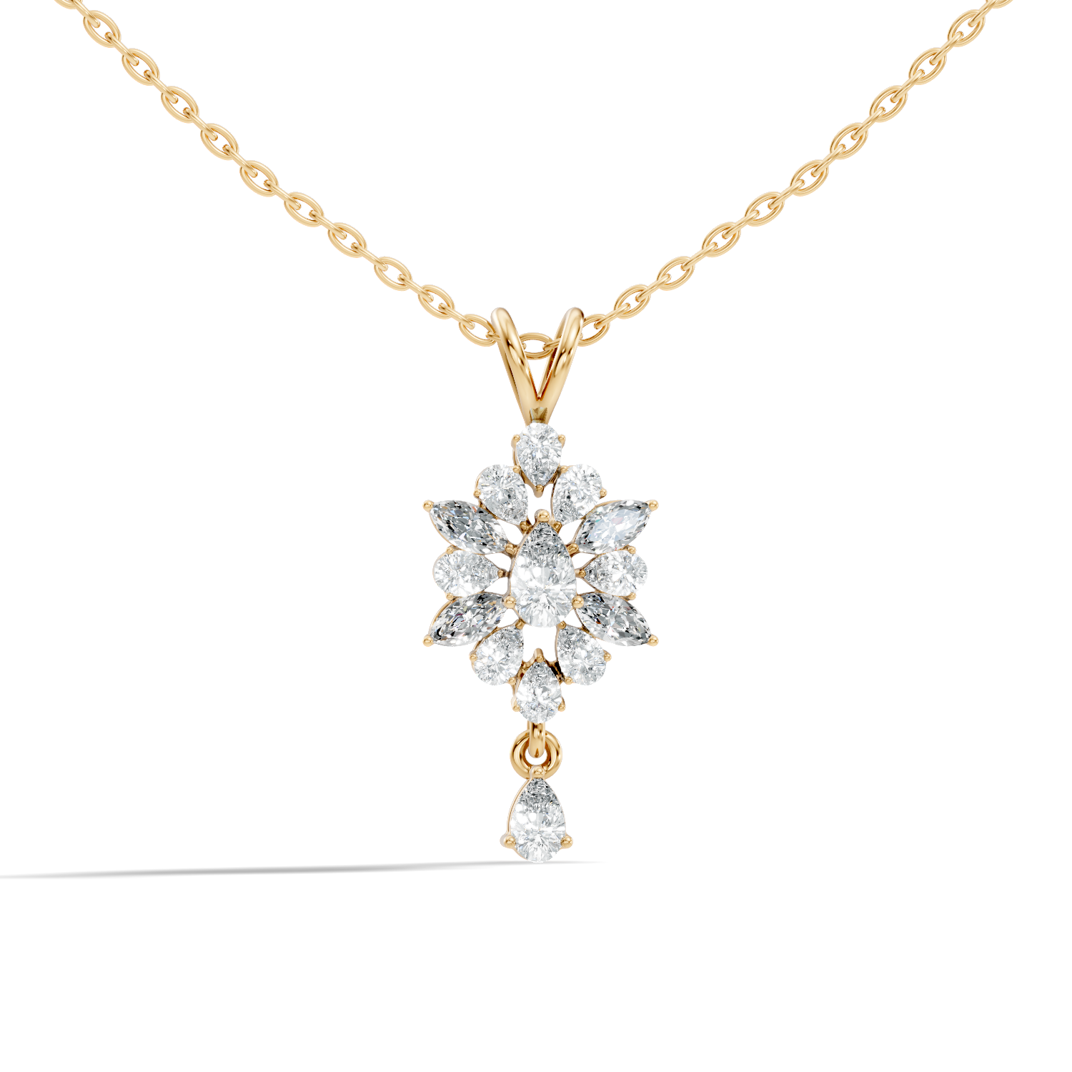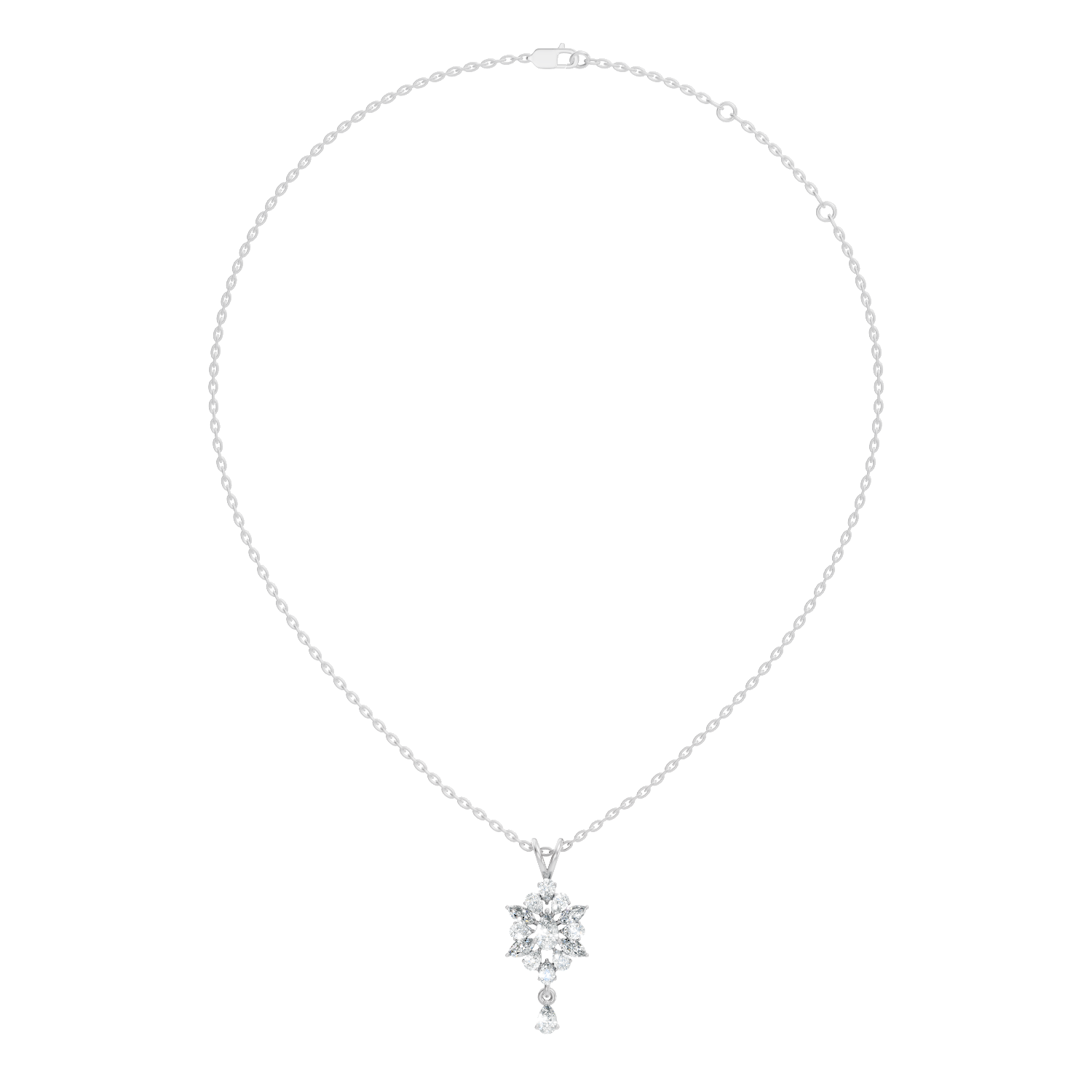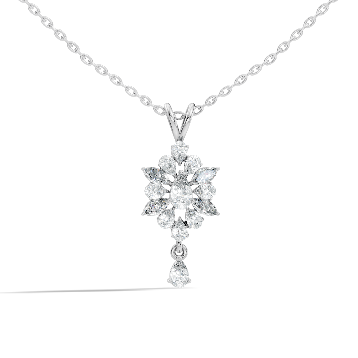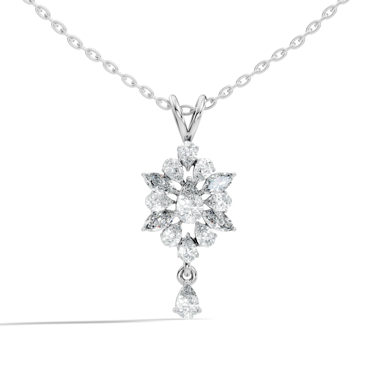 Handcrafted in 10K white gold with a 0.59 Ct lab-grown pear or marquise-cut diamond, polished gold bail for pendant chain attachment, designed for lasting brilliance and sparkle. Customize any piece in 10K, 14K, or 18K yellow, rose, or white gold, with your choice of lab-grown or natural diamonds where applicable.