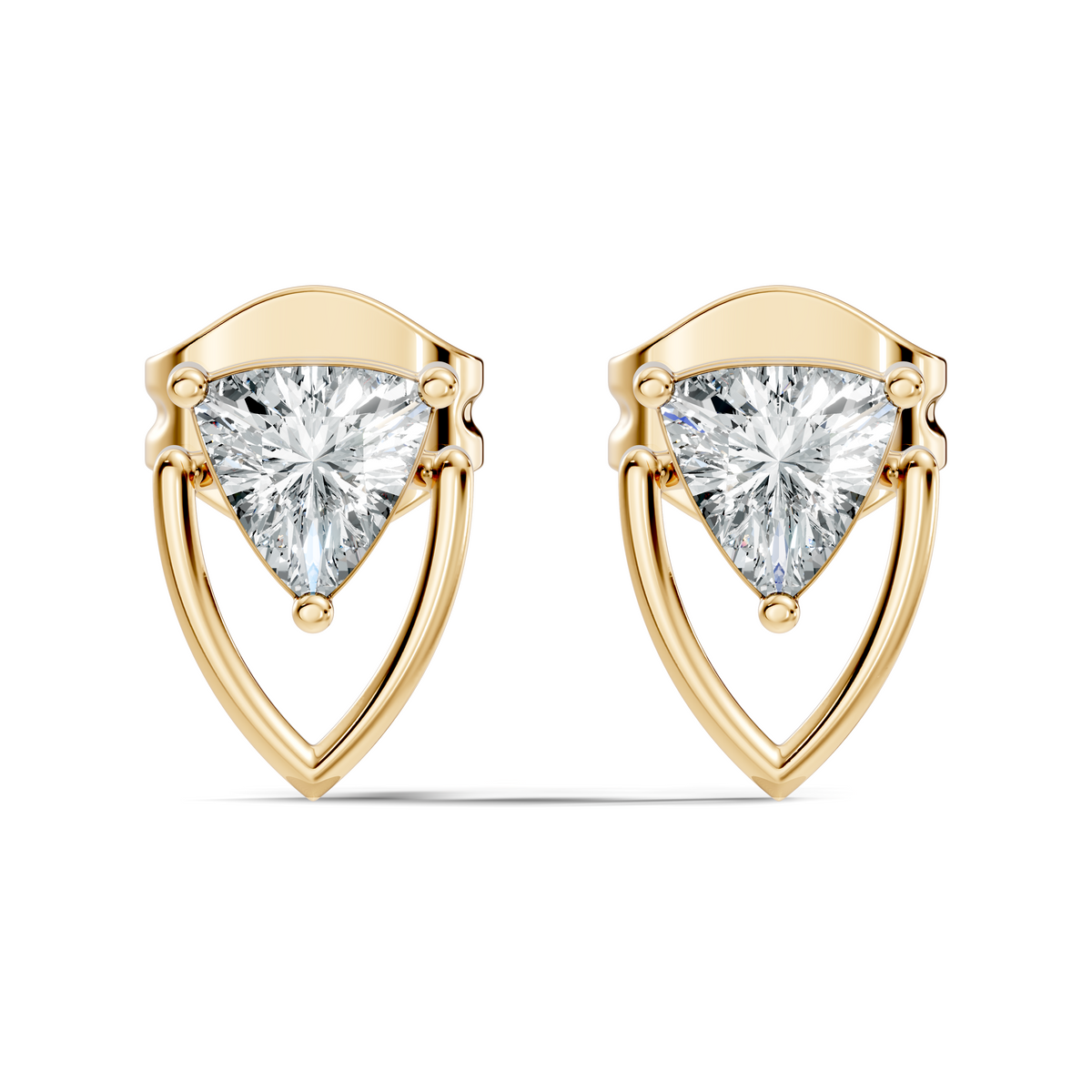 Handcrafted in 10K yellow gold with lab-grown trillion-cut diamonds, total diamond weight approximately 0.90 Ct, secured with post-back closures for comfort and durability. Customize any piece in 10K, 14K, or 18K yellow, rose, or white gold, with your choice of lab-grown or natural diamonds where applicable.