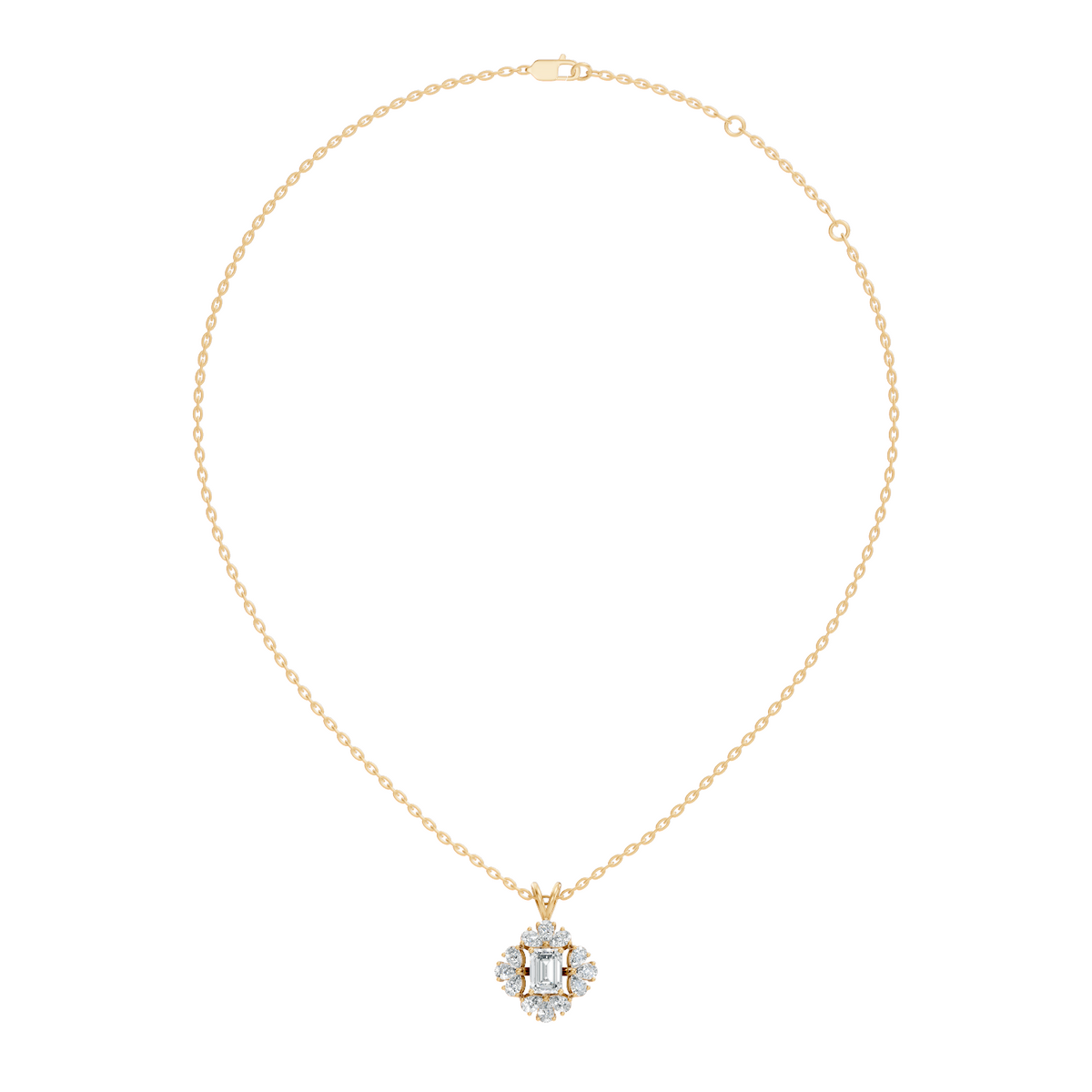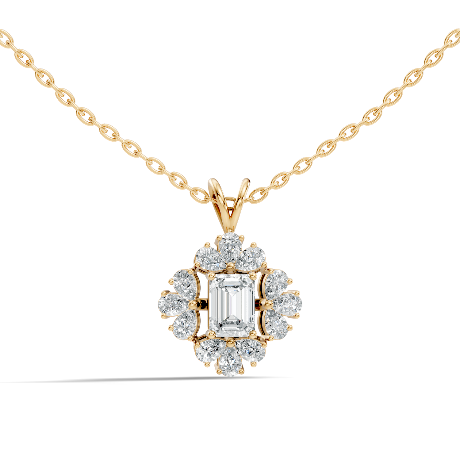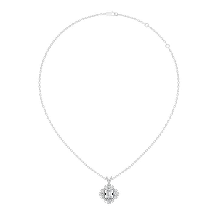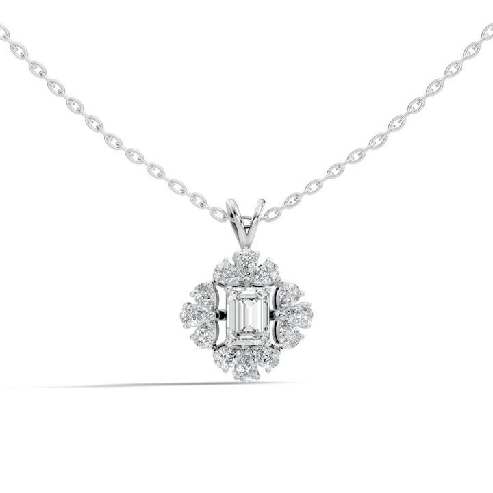 Handcrafted in 10K white gold with 2.04 Ct lab-grown and natural pear and emerald-cut diamonds, polished gold bail for chain attachment, vintage-inspired setting for maximum brilliance. Customize any piece in 10K, 14K, or 18K yellow, rose, or white gold, with your choice of lab-grown or natural diamonds where applicable.