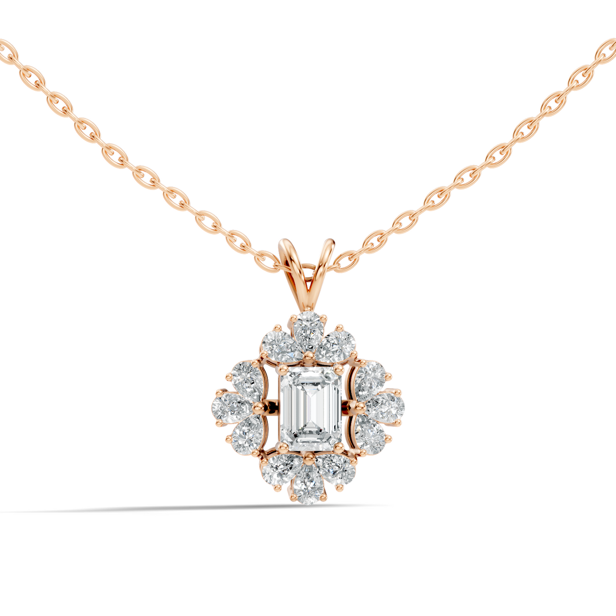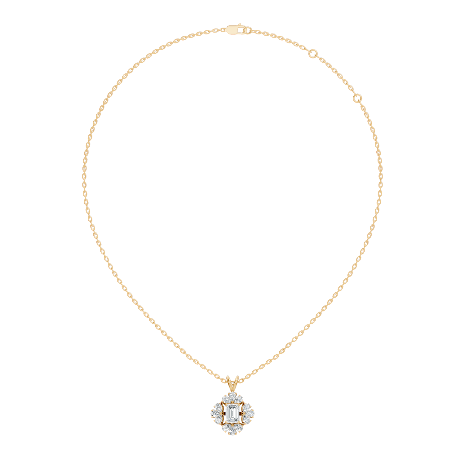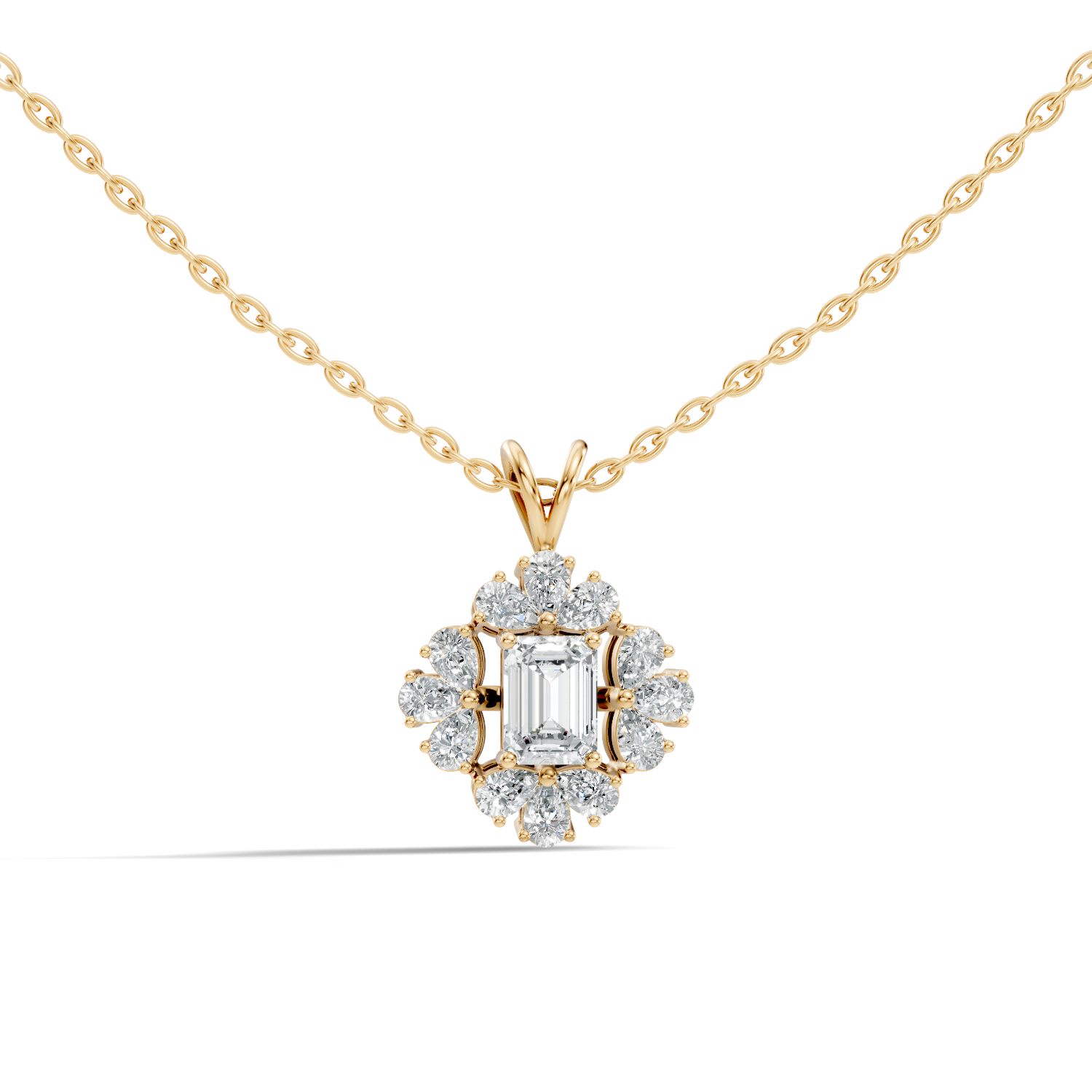 Handcrafted in 10K white gold with 2.04 Ct lab-grown and natural pear and emerald-cut diamonds, polished gold bail for chain attachment, vintage-inspired setting for maximum brilliance. Customize any piece in 10K, 14K, or 18K yellow, rose, or white gold, with your choice of lab-grown or natural diamonds where applicable.
