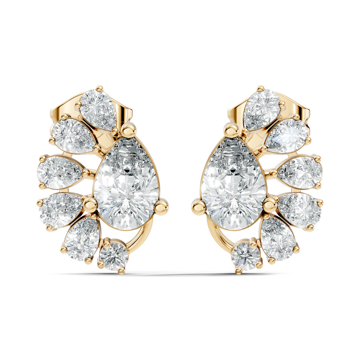 Handcrafted in 10K yellow gold with 2.34 Ct lab-grown round and pear-shaped diamonds, secure post-back closures for comfort and lasting wear. Customize any piece in 10K, 14K, or 18K yellow, rose, or white gold, with your choice of lab-grown or natural diamonds where applicable.