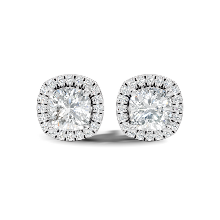 Handcrafted in 10K white gold with cushion, square, and round-shaped lab-grown diamonds totaling 4.51 Ct, secure post-back closures for comfort and lasting wear. Customize any piece in 10K, 14K, or 18K yellow, rose, or white gold, with your choice of lab-grown or natural diamonds where applicable.
