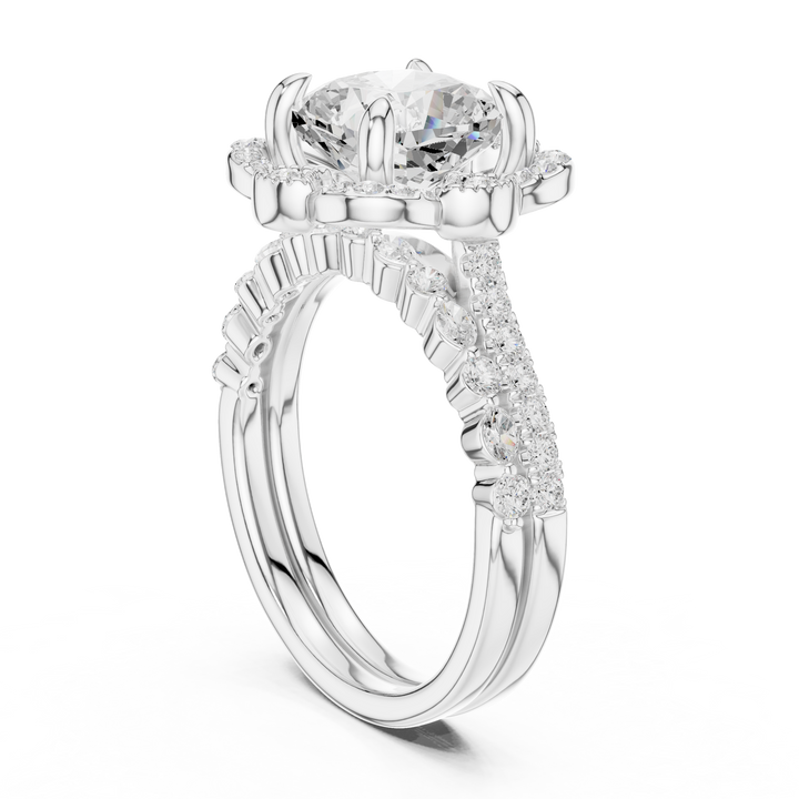 Handcrafted in 10K white gold with 3.60 Ct marquise and round-cut lab-grown diamonds, pave and side-stone detailing with secure prong mountings. Customize any piece in 10K, 14K, or 18K yellow, rose, or white gold, with your choice of lab-grown or natural diamonds where applicable.