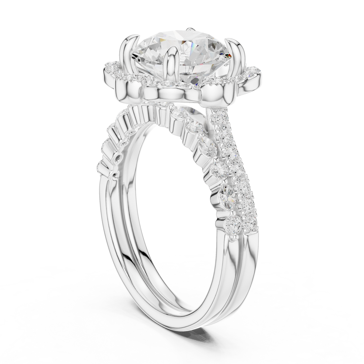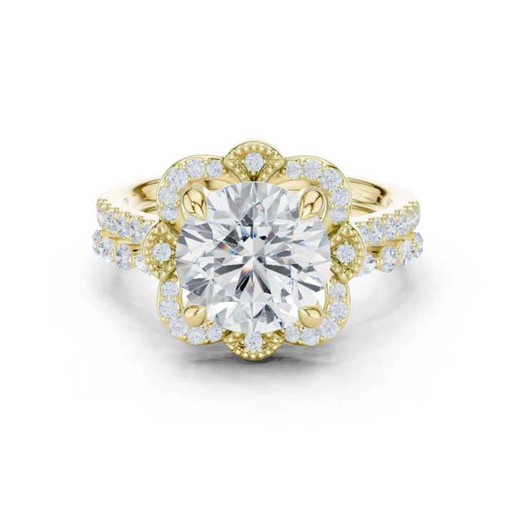 Handcrafted in 10K yellow gold with 3.65 Ct round and marquise-cut lab-grown diamonds, oval-cut center, secure prong setting for lasting brilliance. Customize any piece in 10K, 14K, or 18K yellow, rose, or white gold, with your choice of lab-grown or natural diamonds where applicable.