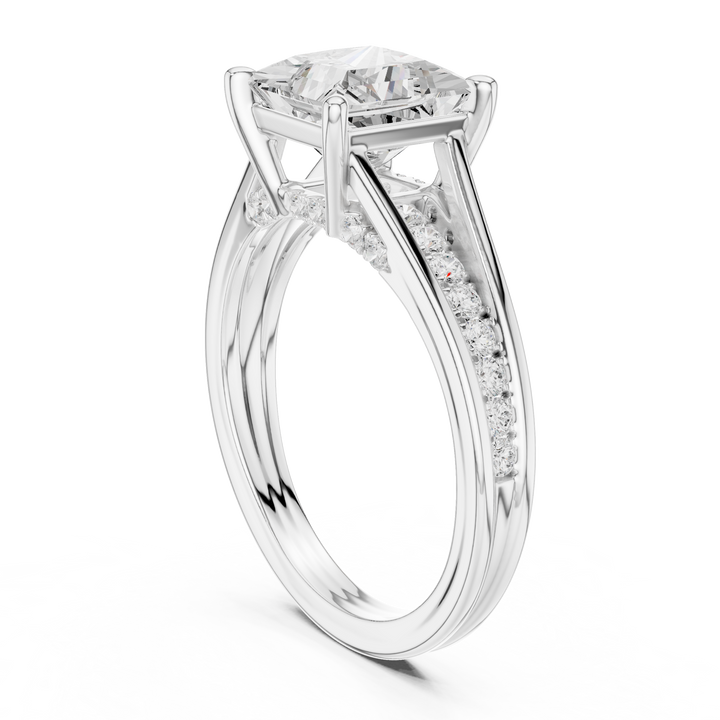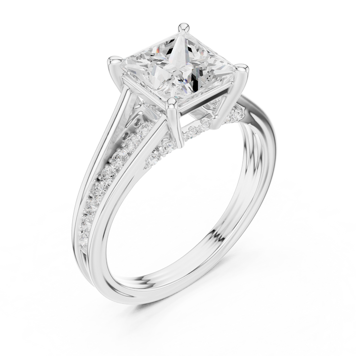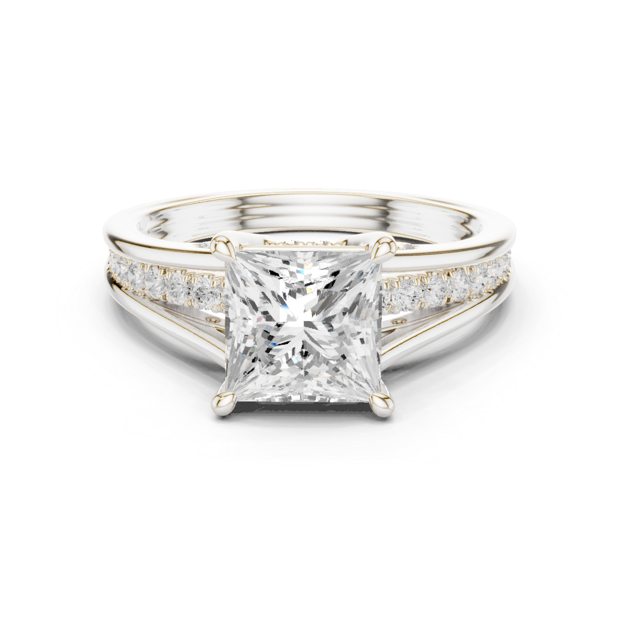 Handcrafted in 10K white gold with 2.30 Ct princess and round-cut lab-grown diamonds, prong and pave settings for durability and brilliance. Customize any piece in 10K, 14K, or 18K yellow, rose, or white gold, with your choice of lab-grown or natural diamonds where applicable.