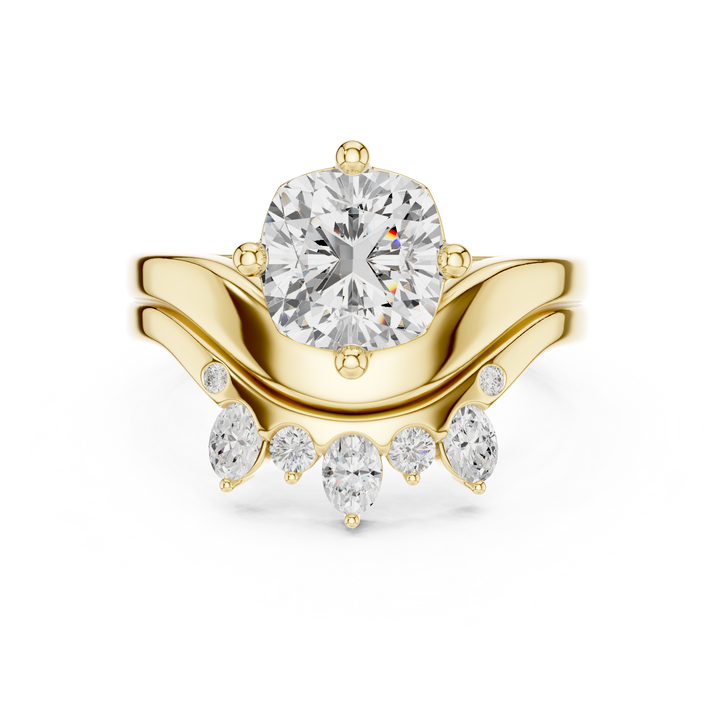 Handcrafted in 10K yellow gold with 3.47 Ct cushion, round, and oval-cut lab-grown diamonds, secure prong settings for durability and brilliance. Customize any piece in 10K, 14K, or 18K yellow, rose, or white gold, with your choice of lab-grown or natural diamonds where applicable.