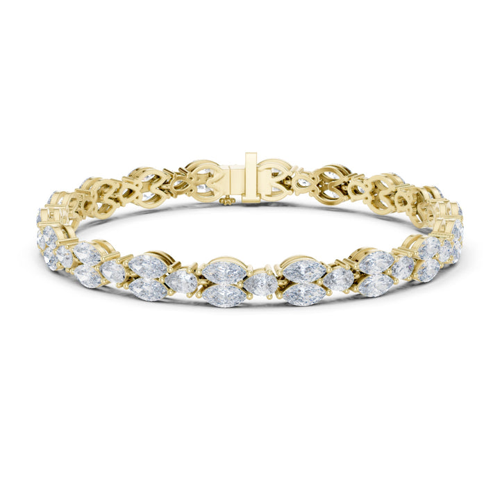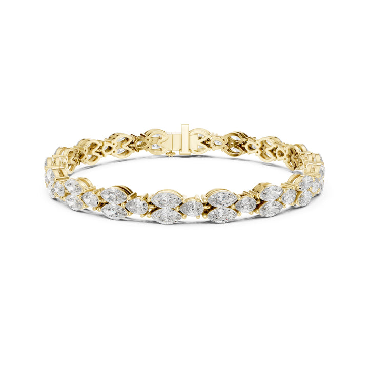 Handcrafted in 10K yellow gold with 2.00Ct round-cut lab-grown diamonds. Tennis style, secured with box clasp, length approx. 7 inches. Customize any piece in 10K, 14K, or 18K yellow, rose, or white gold, with your choice of lab-grown or natural diamonds where applicable.