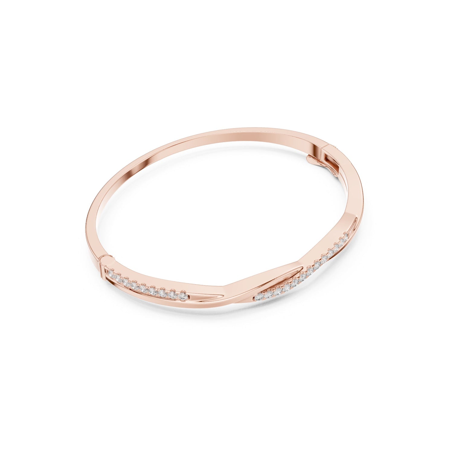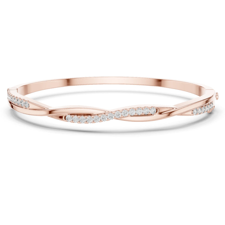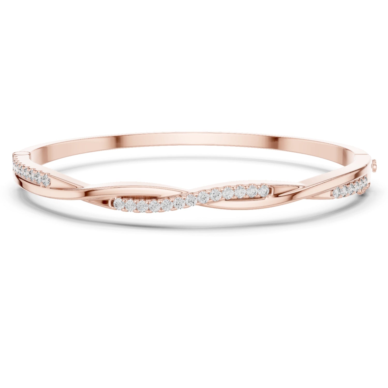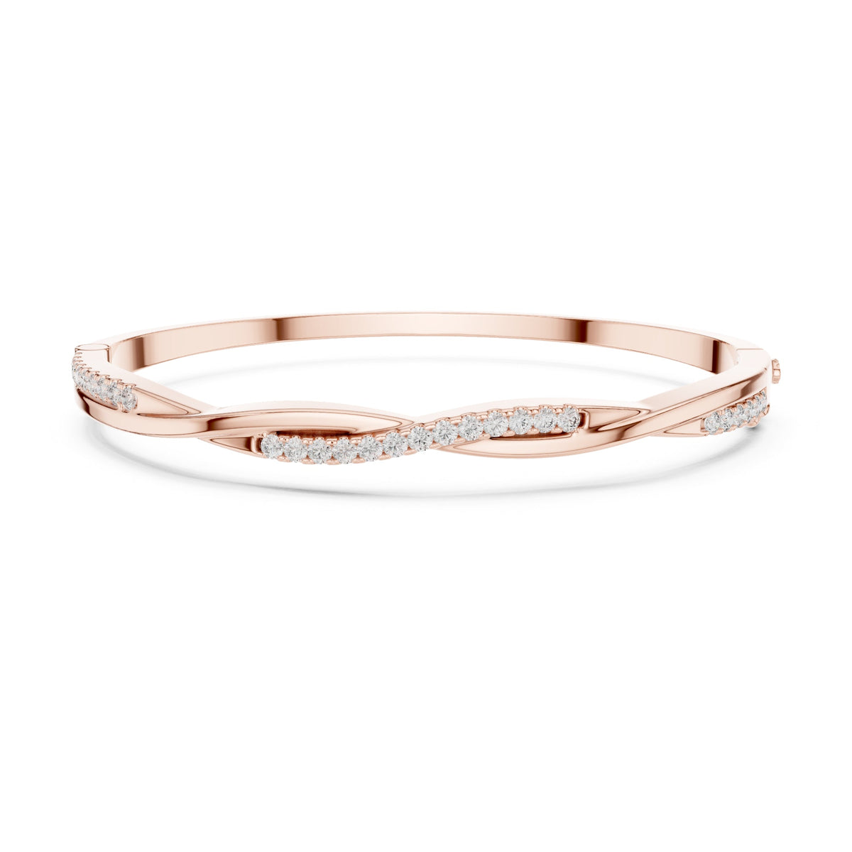 Handcrafted in 10K rose gold with 3.57Ct round-cut lab-grown diamonds. Bangle style, fixed size approx. 6.5 inches diameter. Customize any piece in 10K, 14K, or 18K yellow, rose, or white gold, with your choice of lab-grown or natural diamonds where applicable.