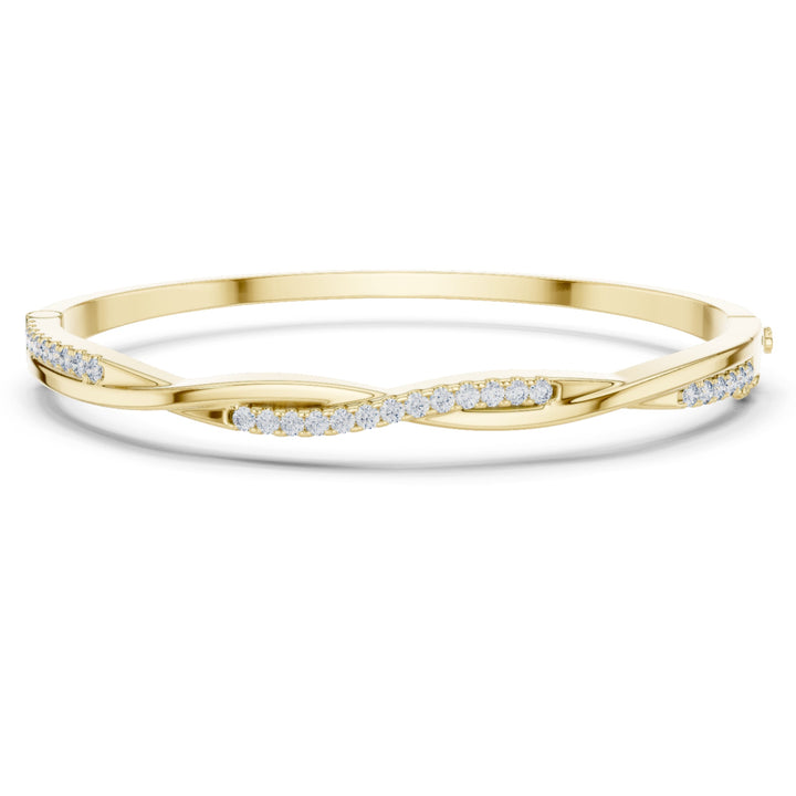 These 3.57Ct Round-Cut Lab-grown Diamond Cluster Bangles by High Carat elevate everyday and special occasion style with radiant sparkle. Featuring 3.57Ct of round-cut diamonds arranged in a vintage-inspired twisted bangle design, each piece combines intricate craftsmanship with luxurious shine. Ideal for daily wear or celebratory events, the lightweight yet striking bangle highlights elegance and sophistication. The unique twisted pattern and sparkling diamonds create a balanced aesthetic of vintage charm and modern refinement. A versatile and meaningful accessory, it perfectly enhances casual ensembles or formal attire while conveying timeless beauty and wearable luxury.