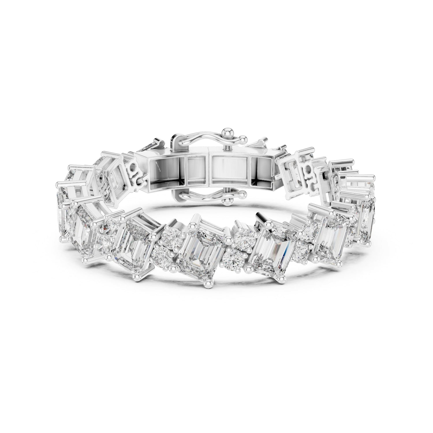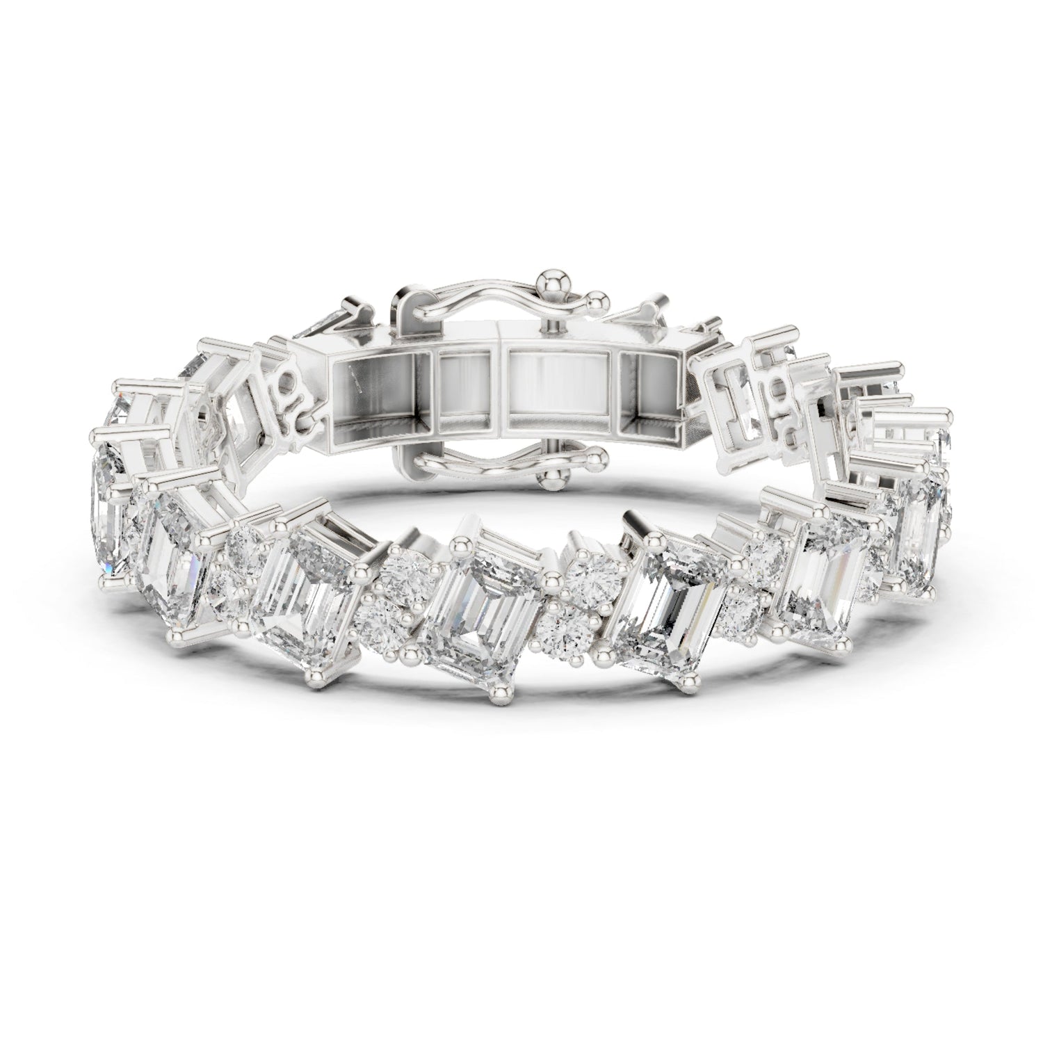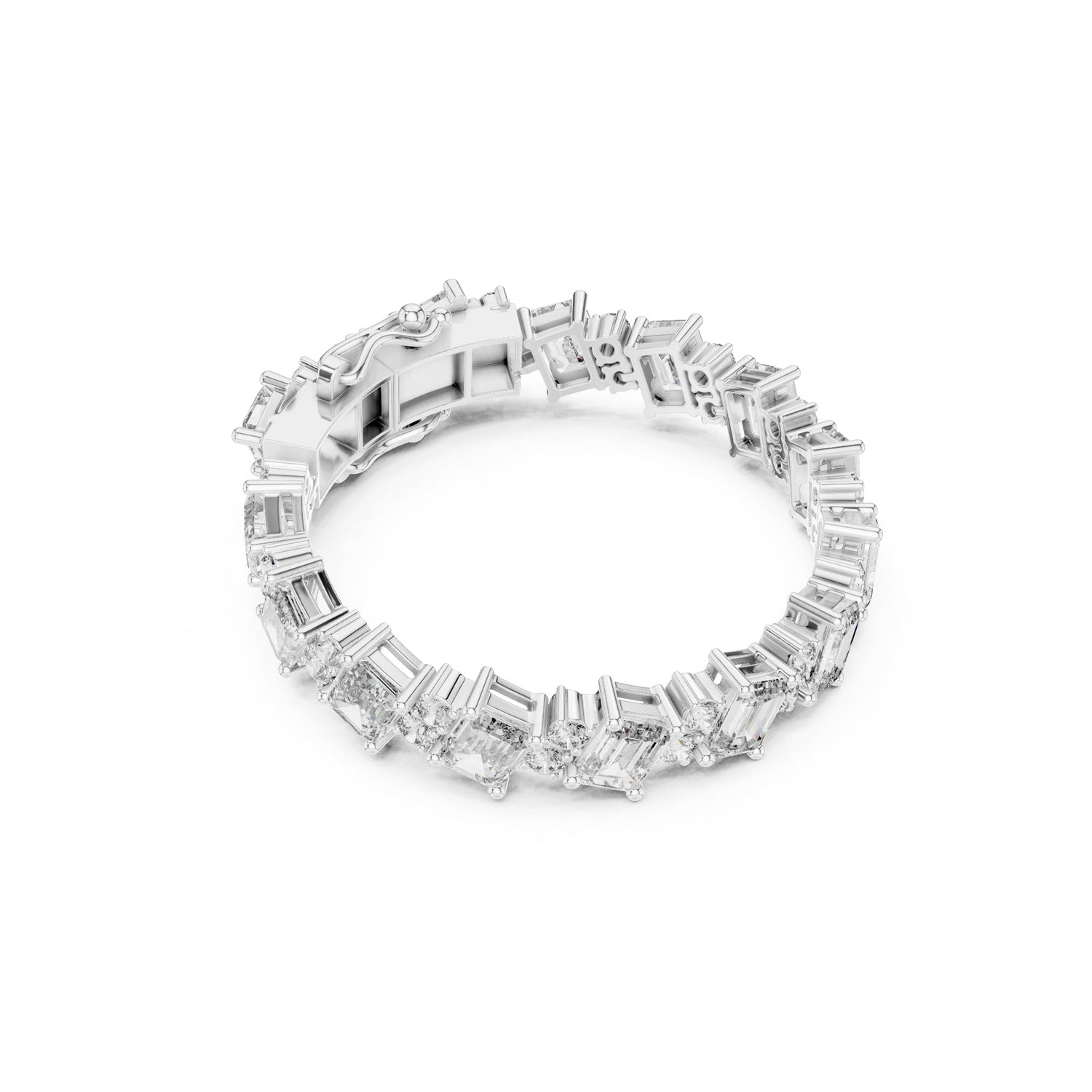 This 5.10Ct Emerald-Cut Lab-grown Diamond Tennis Bracelet by High Carat exudes understated elegance with a minimalist yet sophisticated design. The emerald-cut diamonds are arranged in a seamless row, capturing and reflecting light with every movement. Handcrafted for timeless appeal, this bracelet embodies refined craftsmanship and vintage-inspired charm, making it an ideal accessory for weddings or formal occasions. Its graceful silhouette enhances the natural brilliance of the diamonds, creating a luxurious statement that balances delicacy with bold sparkle. A treasured piece for those who appreciate classic, high-quality jewelry.