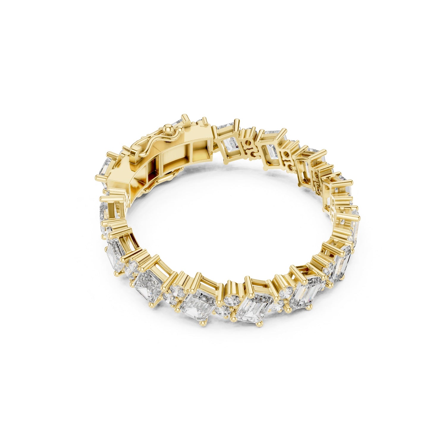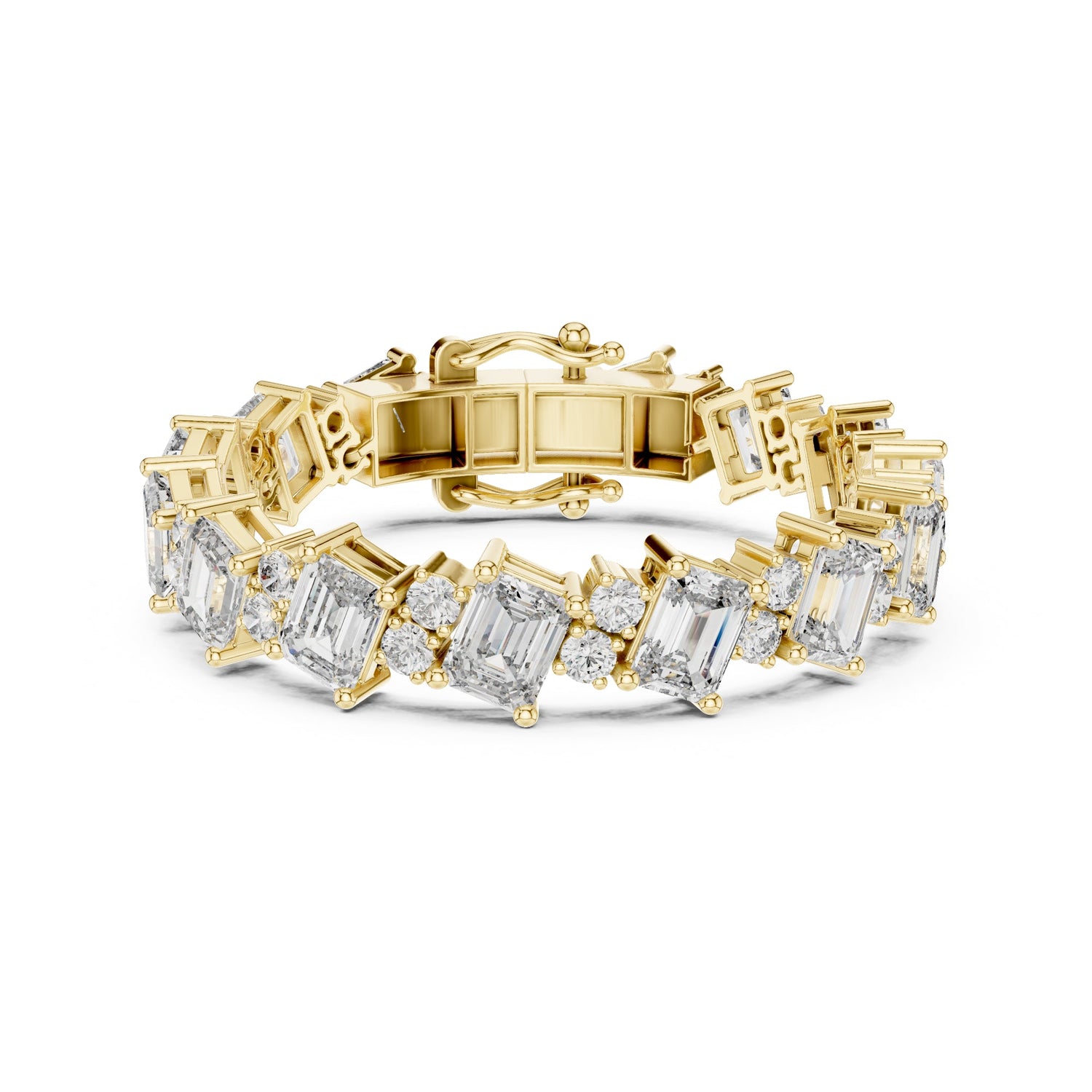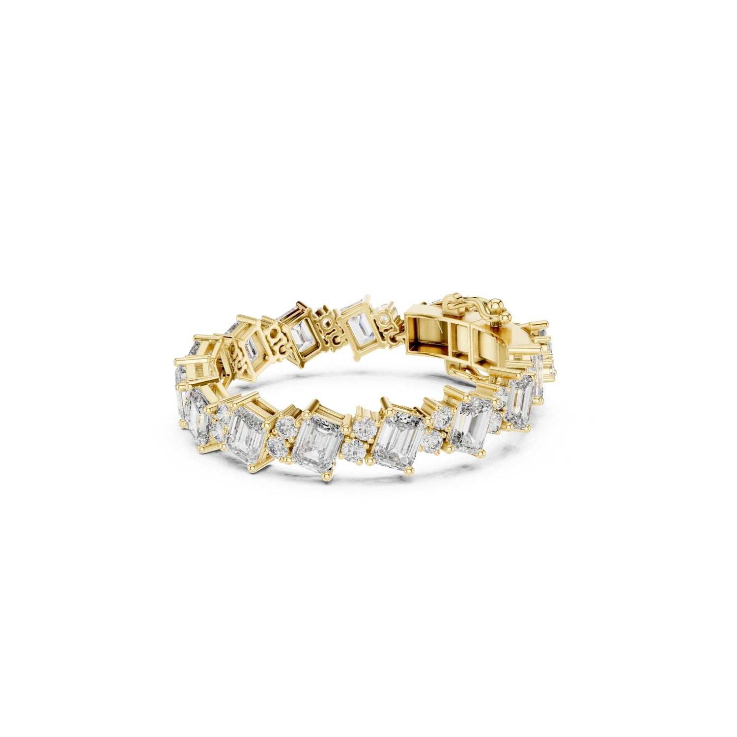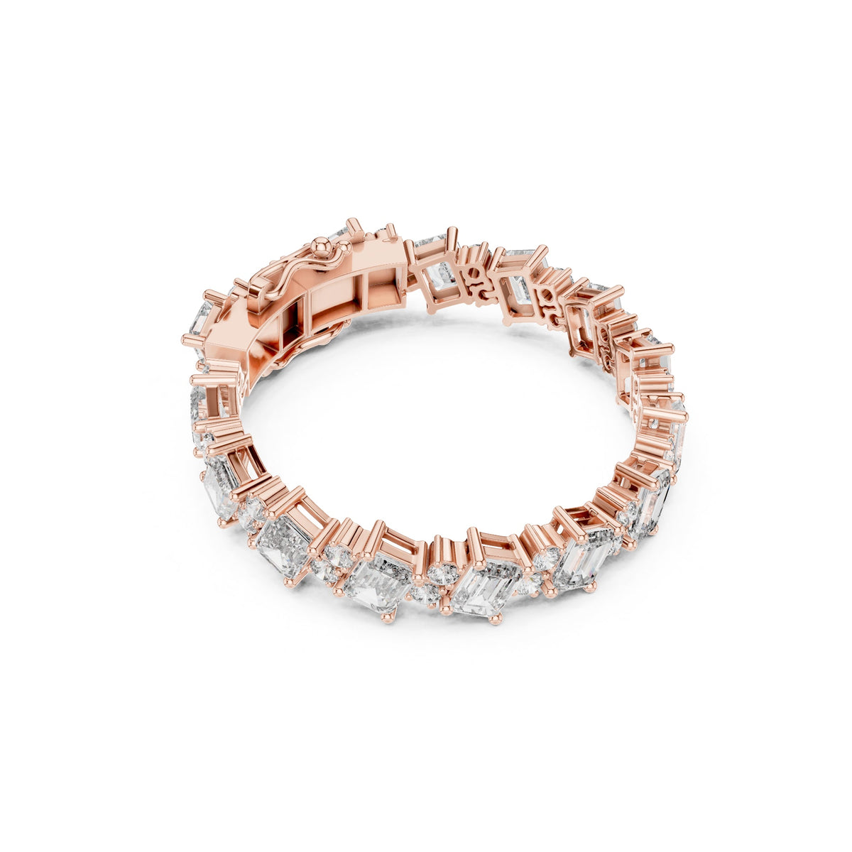 This 5.10Ct Emerald-Cut Lab-grown Diamond Tennis Bracelet by High Carat exudes understated elegance with a minimalist yet sophisticated design. The emerald-cut diamonds are arranged in a seamless row, capturing and reflecting light with every movement. Handcrafted for timeless appeal, this bracelet embodies refined craftsmanship and vintage-inspired charm, making it an ideal accessory for weddings or formal occasions. Its graceful silhouette enhances the natural brilliance of the diamonds, creating a luxurious statement that balances delicacy with bold sparkle. A treasured piece for those who appreciate classic, high-quality jewelry.