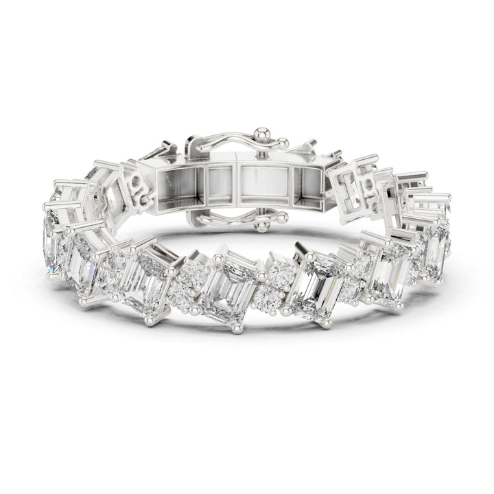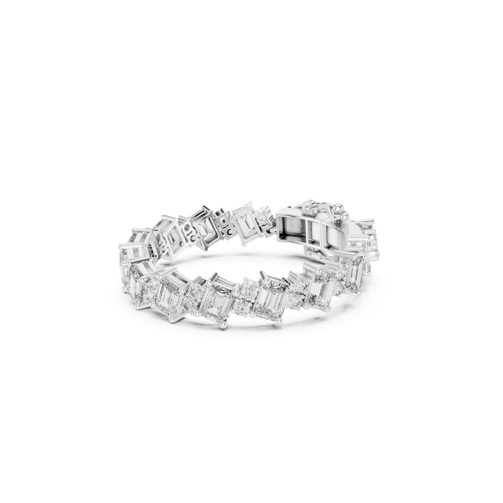 Handcrafted in 10K white gold with 5.10Ct emerald-cut lab-grown diamonds. Tennis style, secured with box clasp, length approx. 7 inches. Customize any piece in 10K, 14K, or 18K yellow, rose, or white gold, with your choice of lab-grown or natural diamonds where applicable.