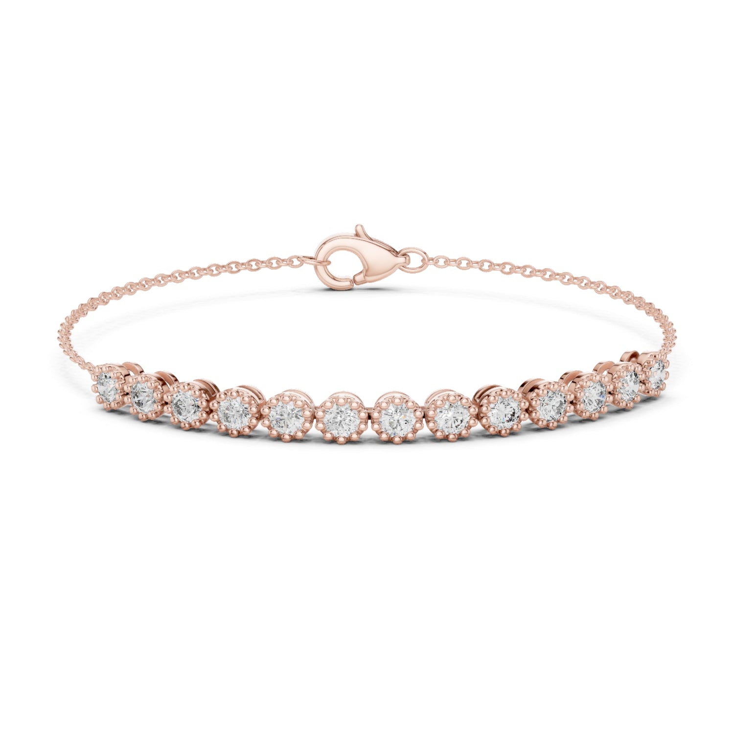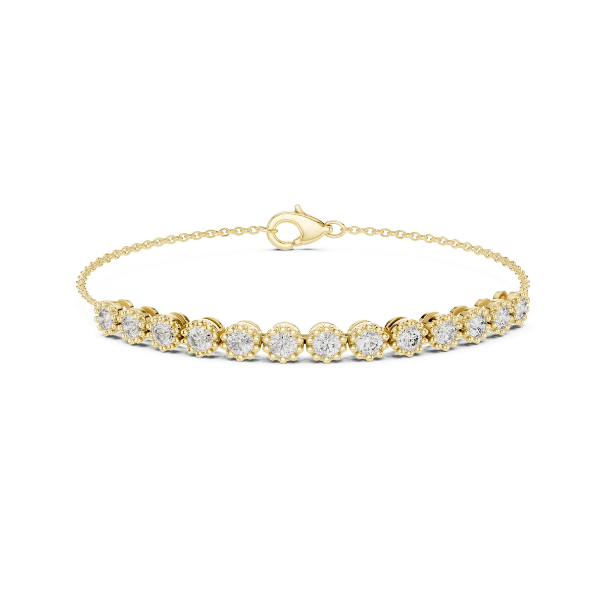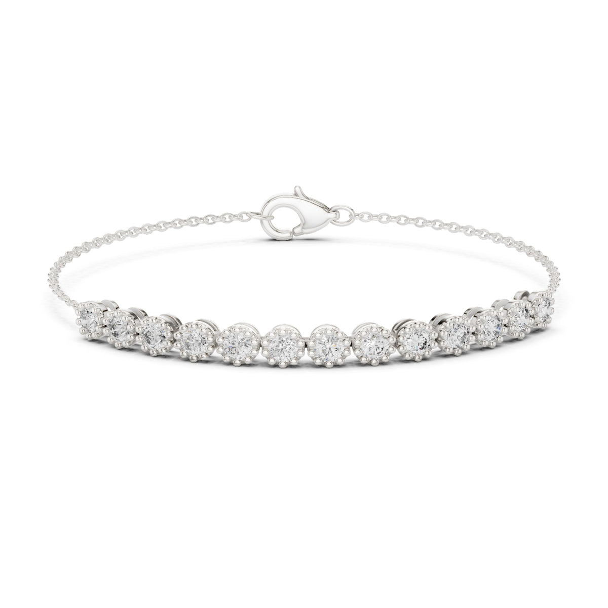 Handcrafted in 10K white gold with 2.00Ct round-cut lab-grown diamonds. Tennis style, secured with box clasp, length approx. 7 inches. Customize any piece in 10K, 14K, or 18K yellow, rose, or white gold, with your choice of lab-grown or natural diamonds where applicable.