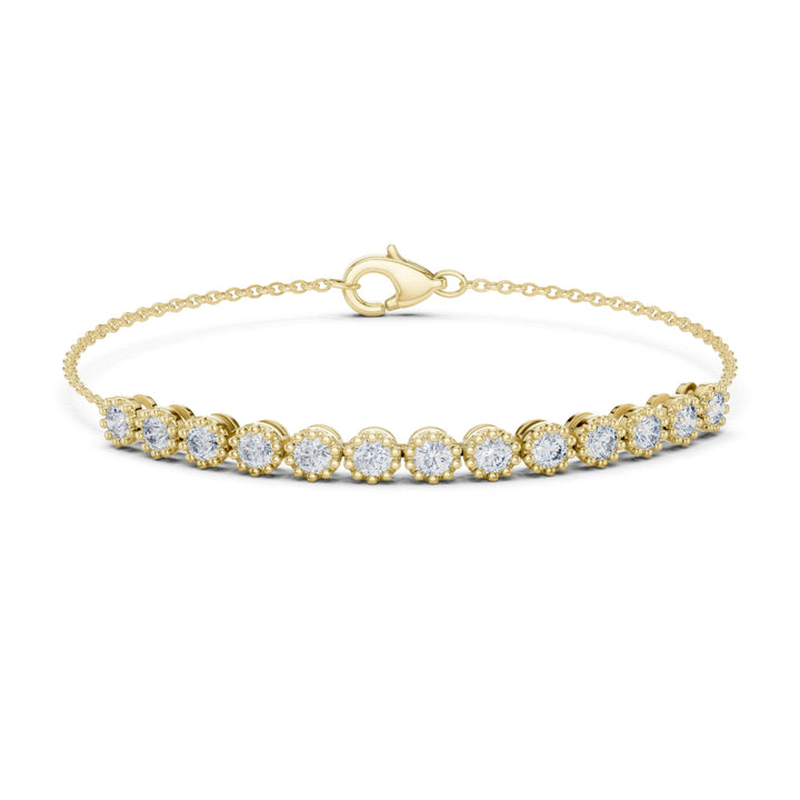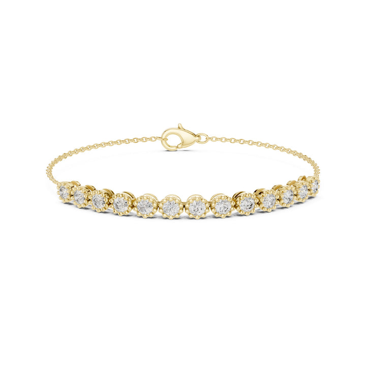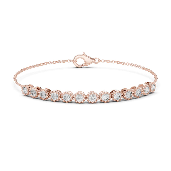 This 2.00Ct Round-Cut Lab-grown Diamond Tennis Bracelet by High Carat showcases radiant sparkle in a vintage-inspired design. The prong-set diamonds form a delicate line that glimmers elegantly, making it a refined accessory for daily wear or special occasions. Handcrafted to perfection, the bracelet conveys subtle sophistication and timeless appeal. Its lightweight structure allows comfortable wear while reflecting light beautifully from every angle. Designed for women who appreciate understated luxury, it complements any ensemble with elegance and versatility, serving as a classic, cherished piece in a curated jewelry collection.