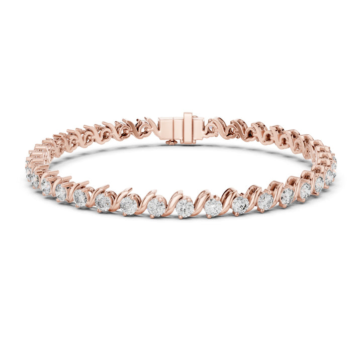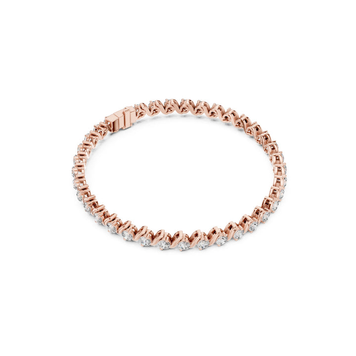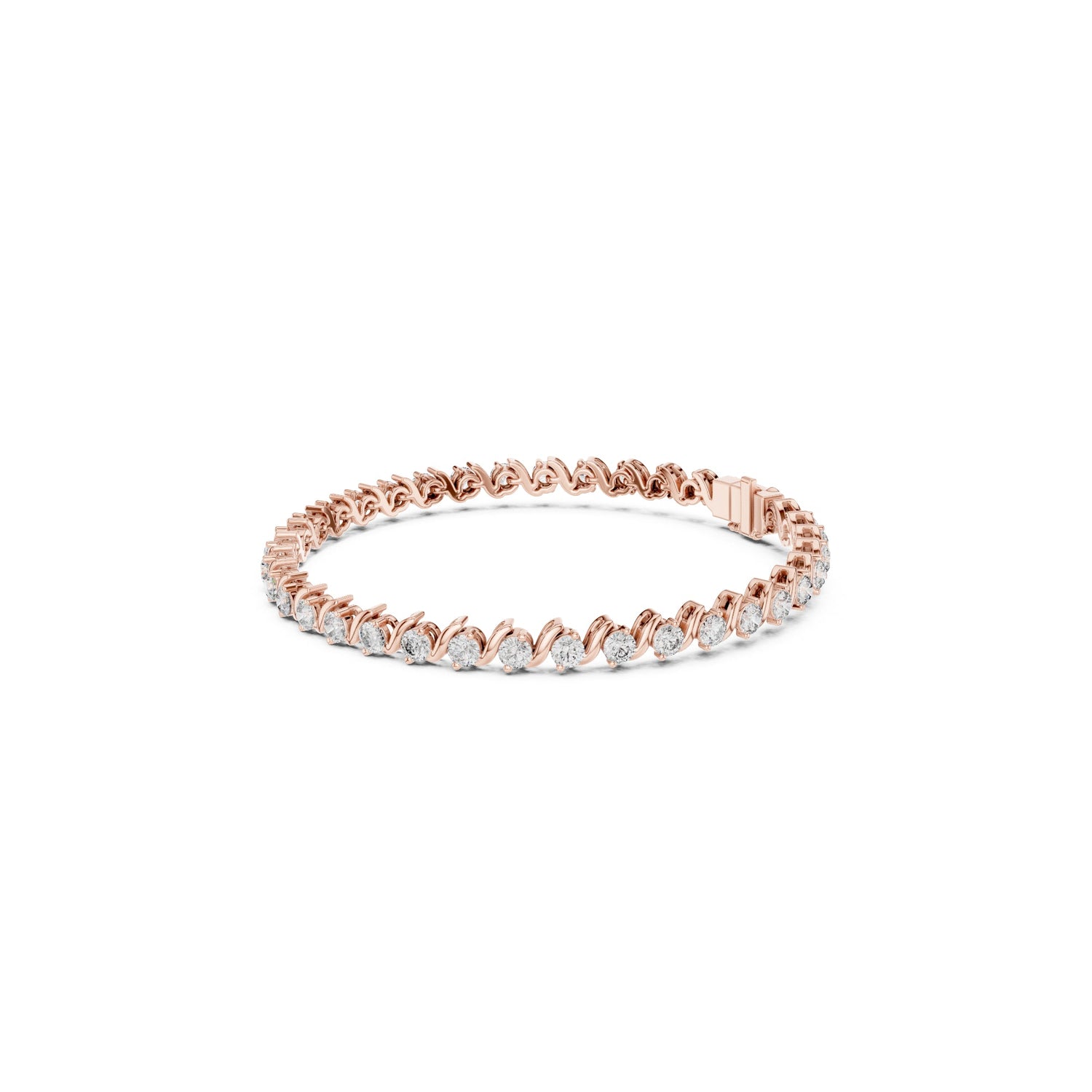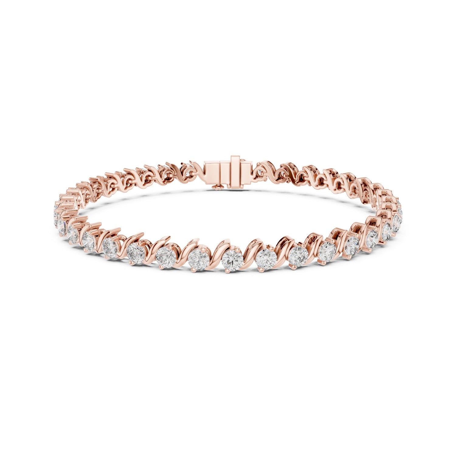 Handcrafted in 10K rose gold with 2.00Ct round-cut lab-grown diamonds. Tennis style, secured with box clasp, length approx. 7 inches. Customize any piece in 10K, 14K, or 18K yellow, rose, or white gold, with your choice of lab-grown or natural diamonds where applicable.