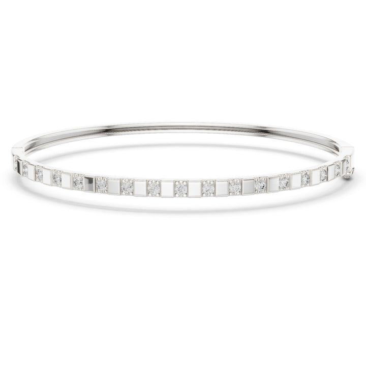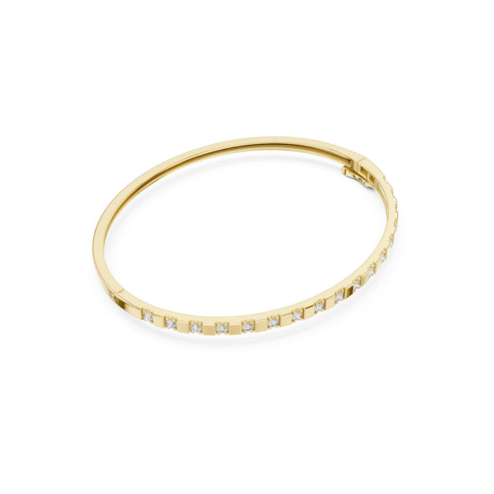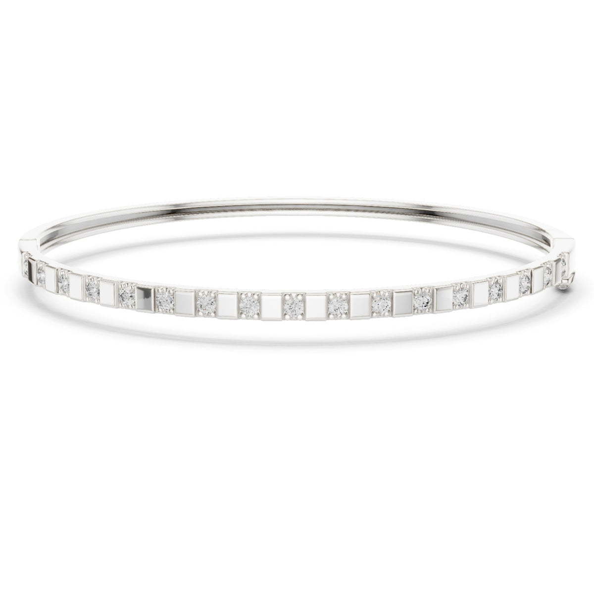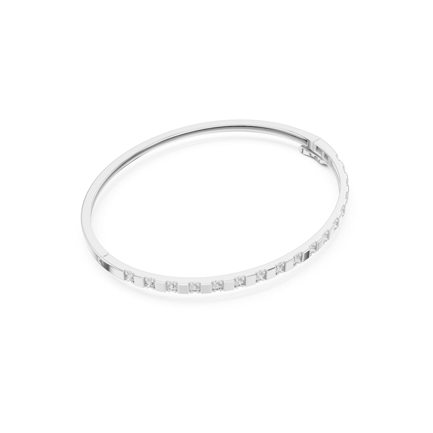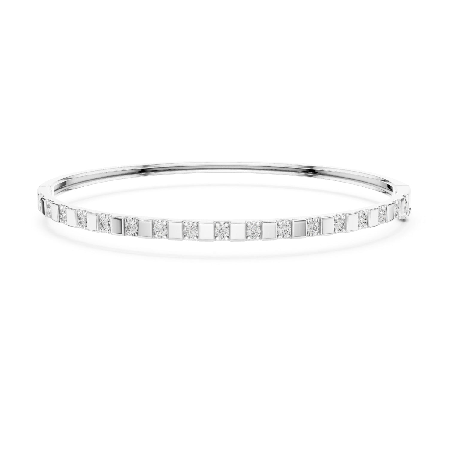 Handcrafted in 10K white gold with 3.57Ct round-cut lab-grown diamonds. Bangle style, fixed size approx. 6.5 inches diameter. Customize any piece in 10K, 14K, or 18K yellow, rose, or white gold, with your choice of lab-grown or natural diamonds where applicable.