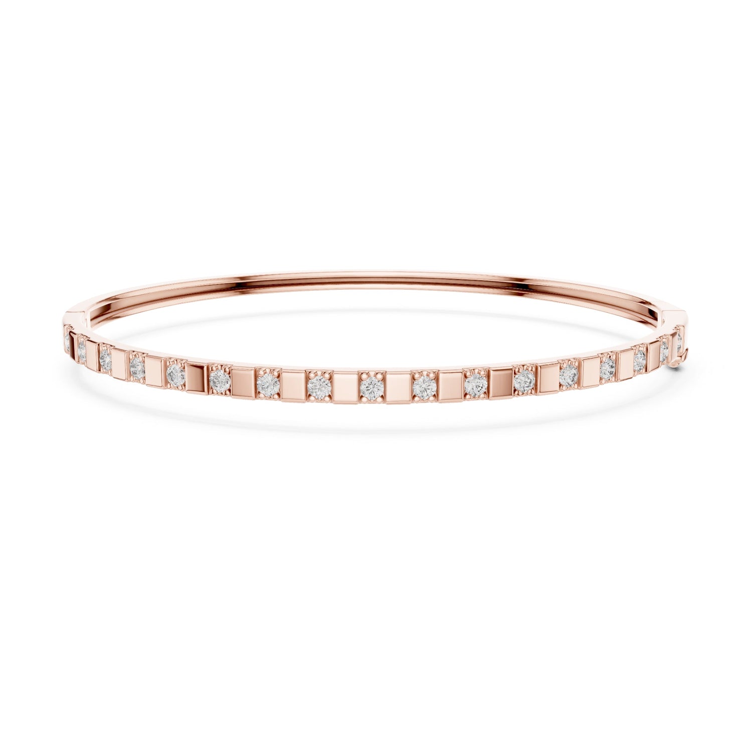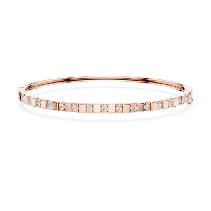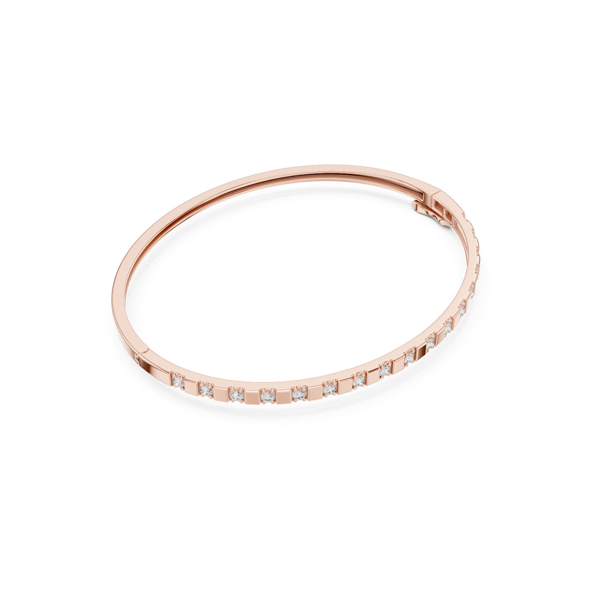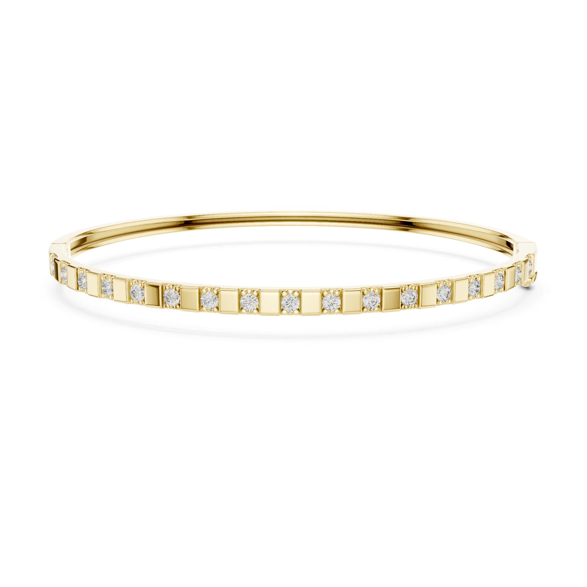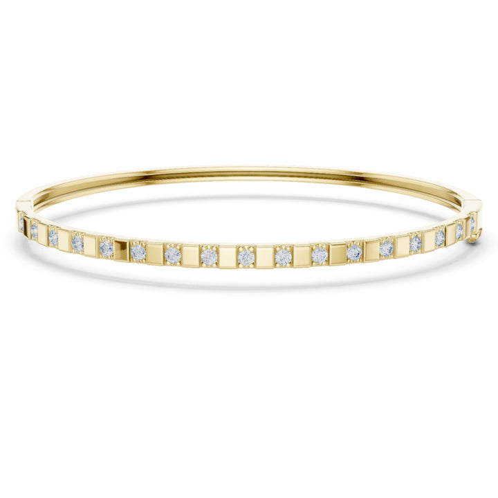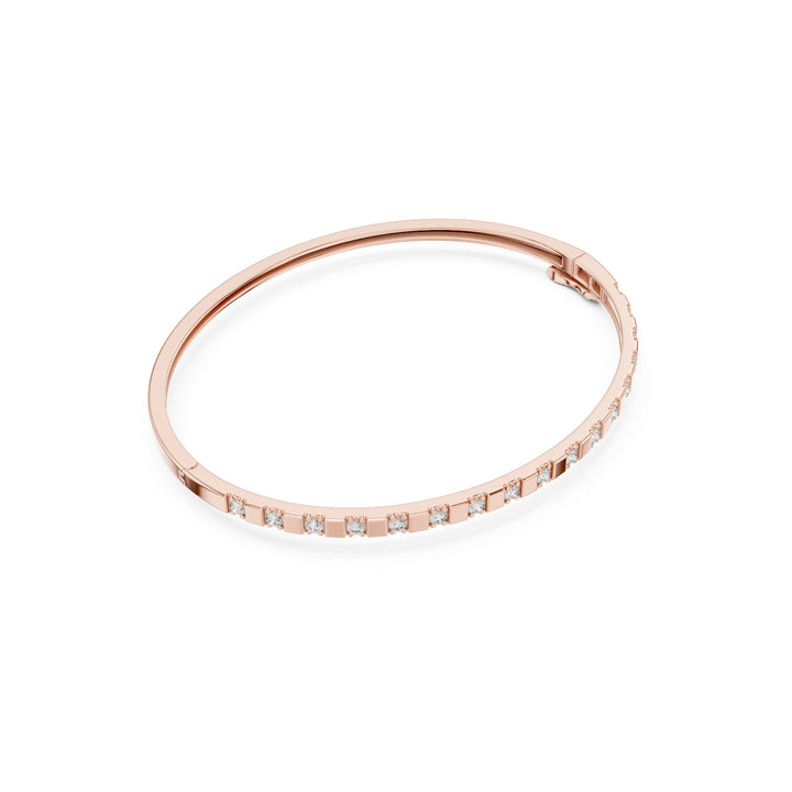 Handcrafted in 10K white gold with 3.57Ct round-cut lab-grown diamonds. Bangle style, fixed size approx. 6.5 inches diameter. Customize any piece in 10K, 14K, or 18K yellow, rose, or white gold, with your choice of lab-grown or natural diamonds where applicable.