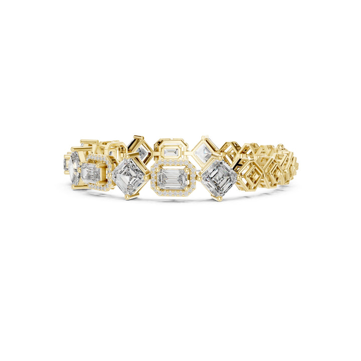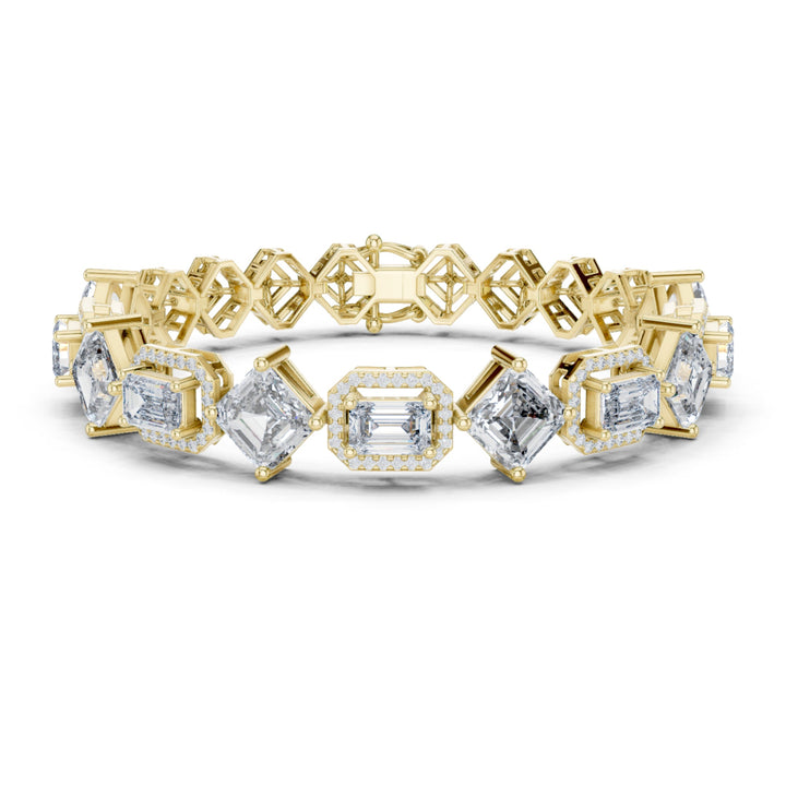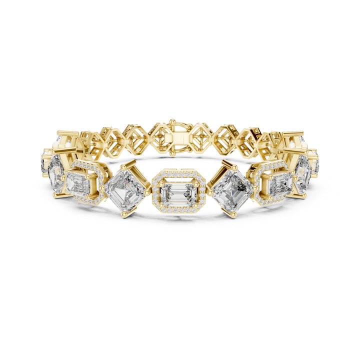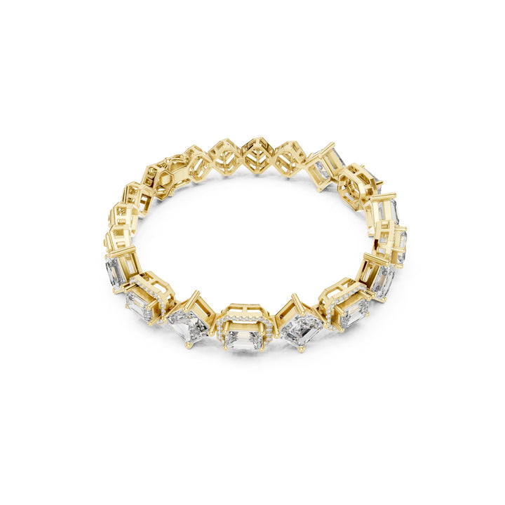 Handcrafted in 10K yellow gold with 5.17Ct round-cut lab-grown diamonds. Tennis style, secured with box clasp, length approx. 7 inches. Customize any piece in 10K, 14K, or 18K yellow, rose, or white gold, with your choice of lab-grown or natural diamonds where applicable.