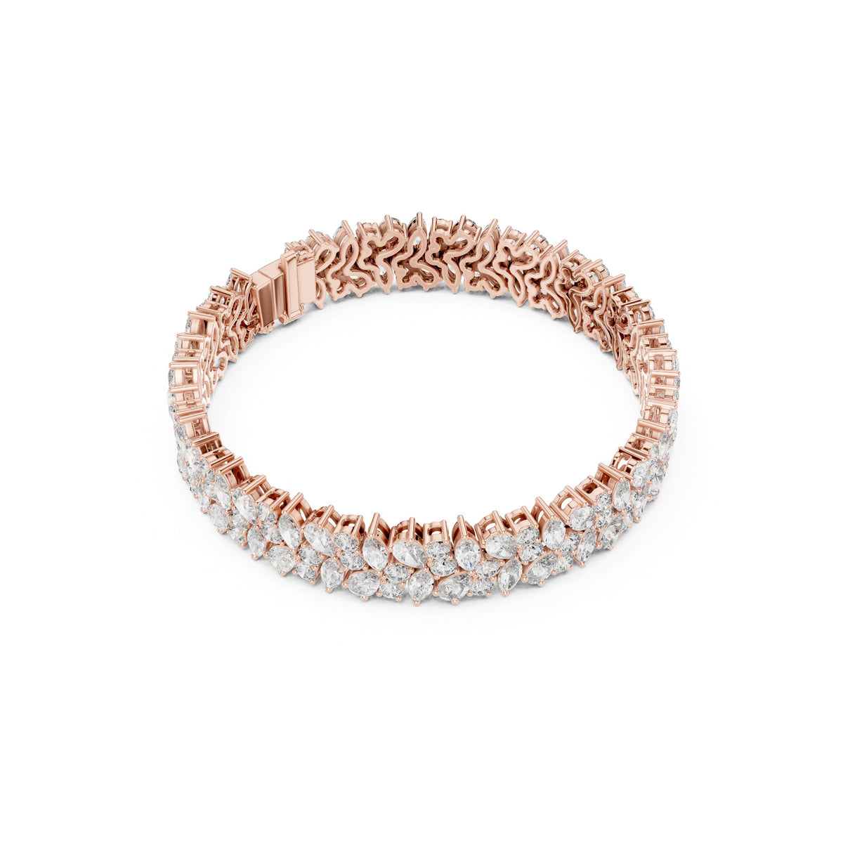 Handcrafted in 10K rose gold with 2.00Ct round-cut lab-grown diamonds. Tennis style, secured with box clasp, length approx. 7 inches. Customize any piece in 10K, 14K, or 18K yellow, rose, or white gold, with your choice of lab-grown or natural diamonds where applicable.