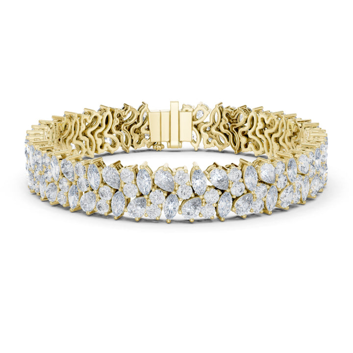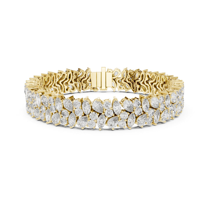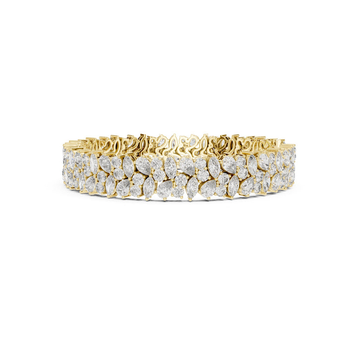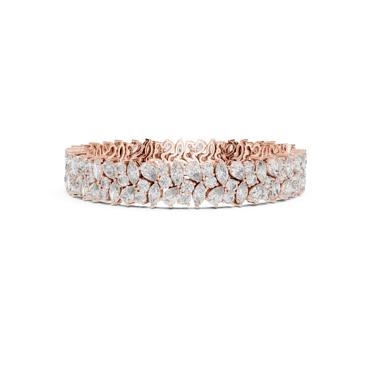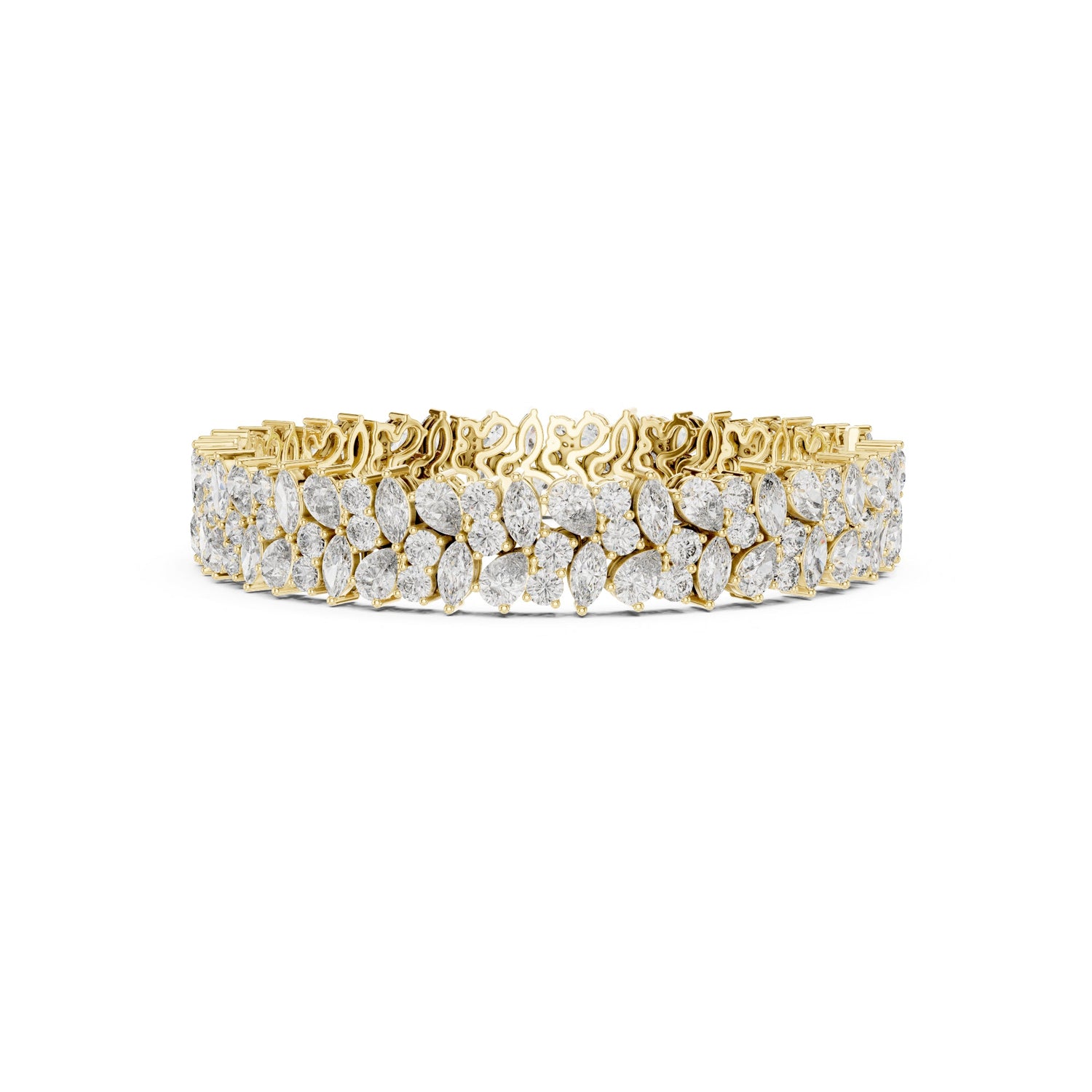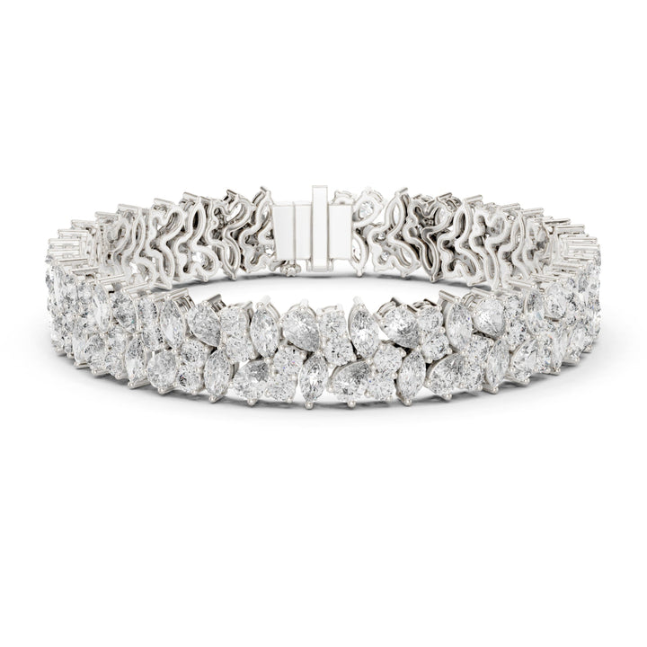 This 2.00Ct Round-Cut Lab-grown Diamond Tennis Bracelet by High Carat radiates elegance and sophistication with a multi-cut diamond design. Featuring prong-set round, pear, and marquise-cut diamonds of top-grade quality, each stone captures light brilliantly, creating a dazzling flow of sparkle. Perfect for gifting, parties, or formal occasions, the bracelet combines meticulous craftsmanship with a refined vintage aesthetic. Its dainty yet luxurious design allows for comfortable wear while making a statement of polished sophistication. A versatile accessory, it can be layered with complementary jewelry or worn alone to elevate any outfit.