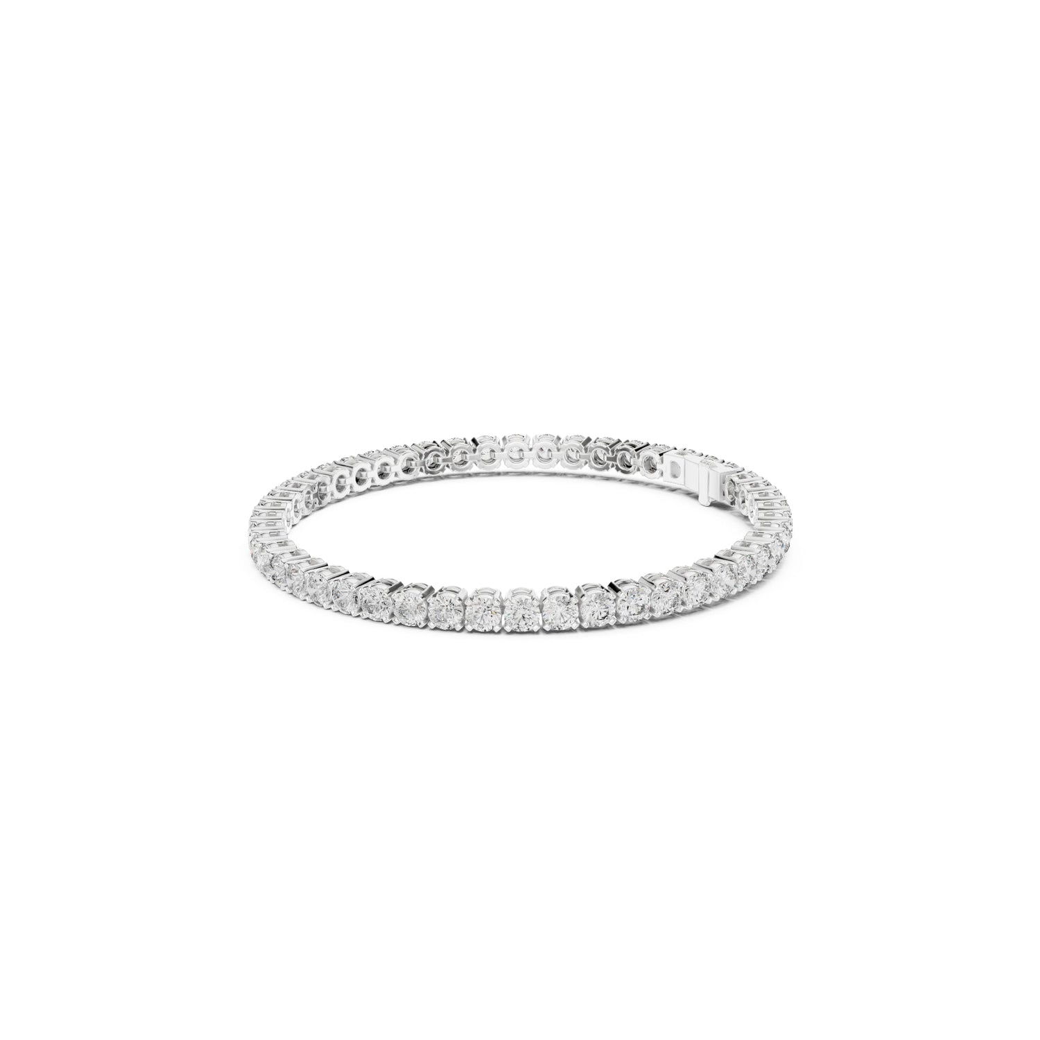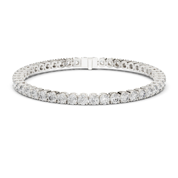 Handcrafted in 10K white gold with 2.00Ct round-cut lab-grown diamonds. Tennis style, secured with box clasp, length approx. 7 inches. Customize any piece in 10K, 14K, or 18K yellow, rose, or white gold, with your choice of lab-grown or natural diamonds where applicable.