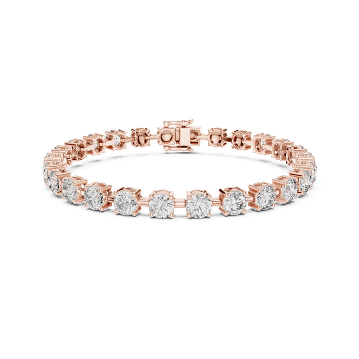 Handcrafted in 10K rose gold with 2.00Ct round-cut lab-grown diamonds. Tennis style, secured with box clasp, length approx. 7 inches. Customize any piece in 10K, 14K, or 18K yellow, rose, or white gold, with your choice of lab-grown or natural diamonds where applicable.