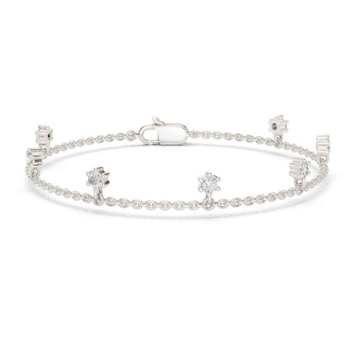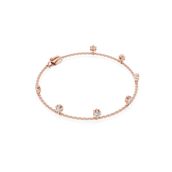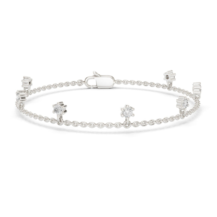 Handcrafted in 10K yellow gold with 5.17Ct round-cut lab-grown diamonds. Charm style, secured with lobster clasp, length approx. 7 inches. Customize any piece in 10K, 14K, or 18K yellow, rose, or white gold, with your choice of lab-grown or natural diamonds where applicable.