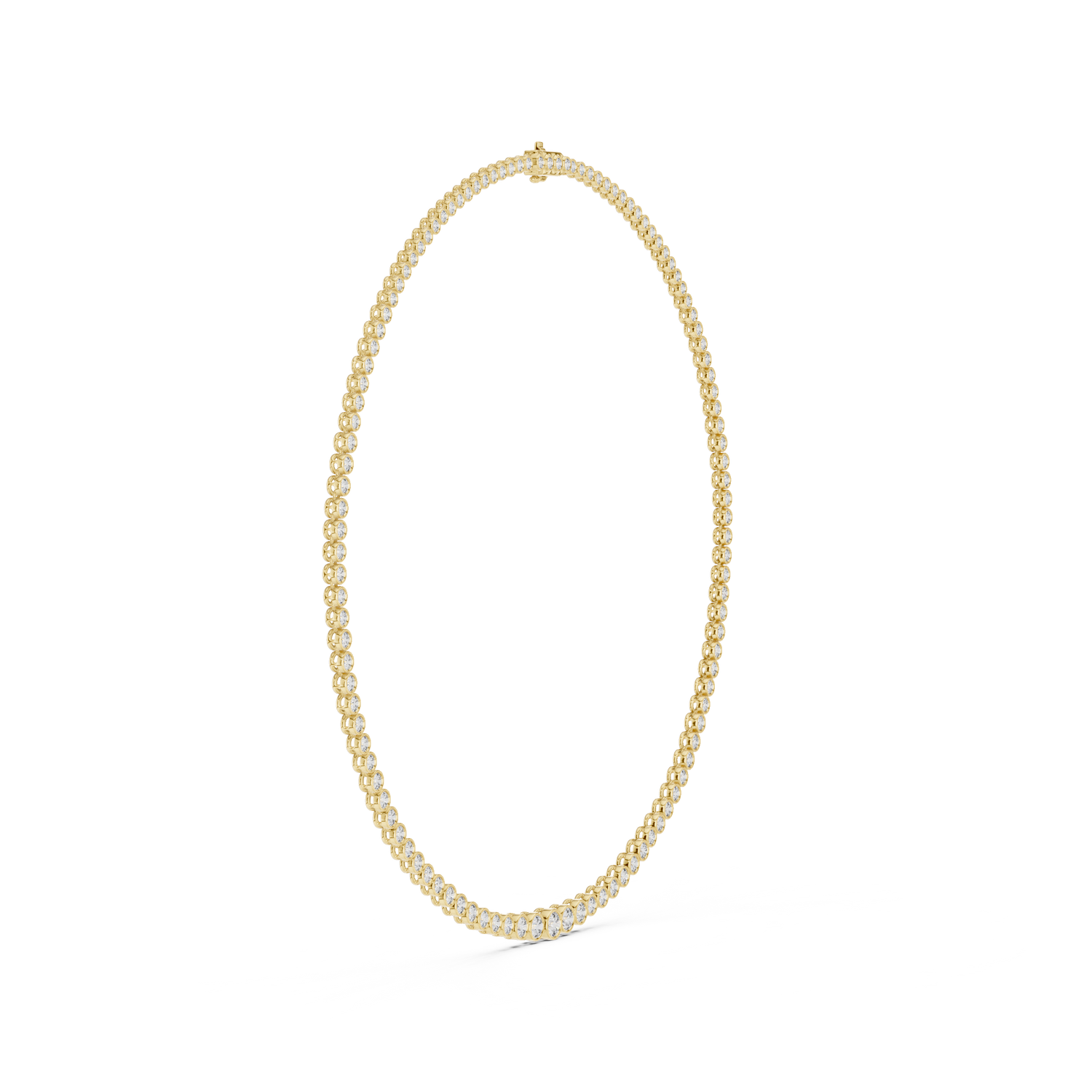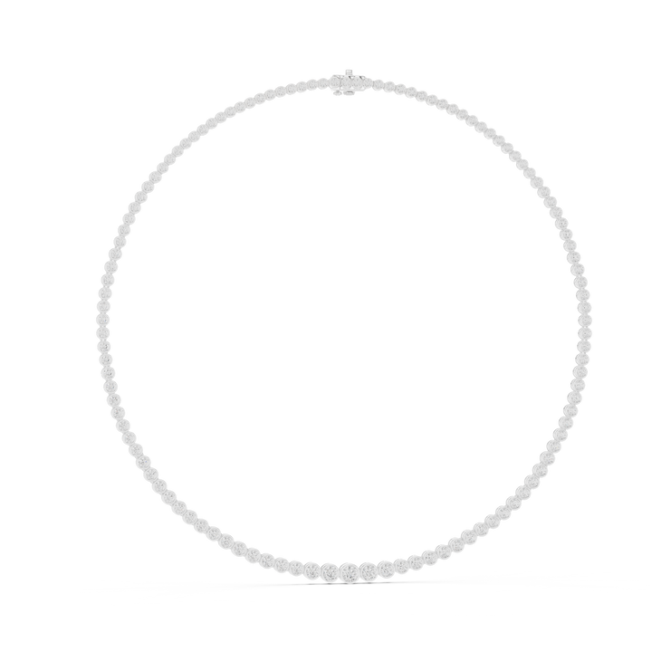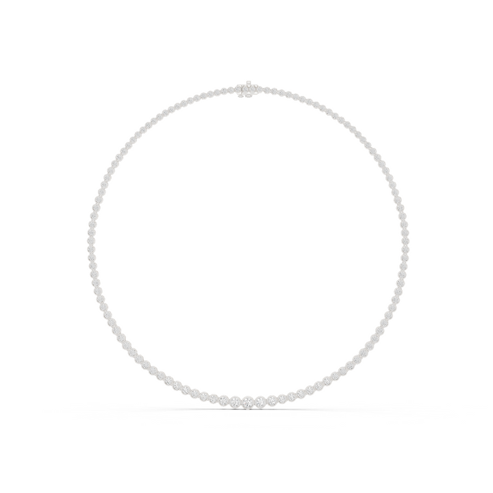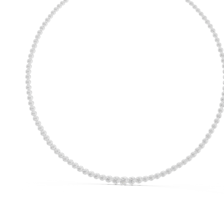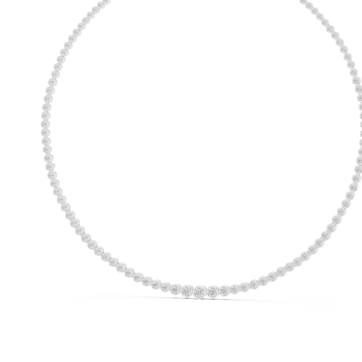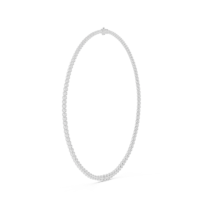 Handcrafted in 10K white gold with 7.26Ct round-cut lab-grown and natural diamonds. Tennis-style necklace, secured with spring ring clasp, length approx. 18 inches. Customize any piece in 10K, 14K, or 18K yellow, rose, or white gold, with your choice of lab-grown or natural diamonds where applicable.