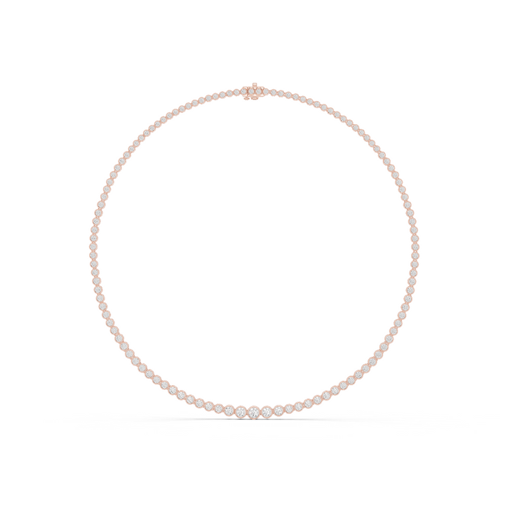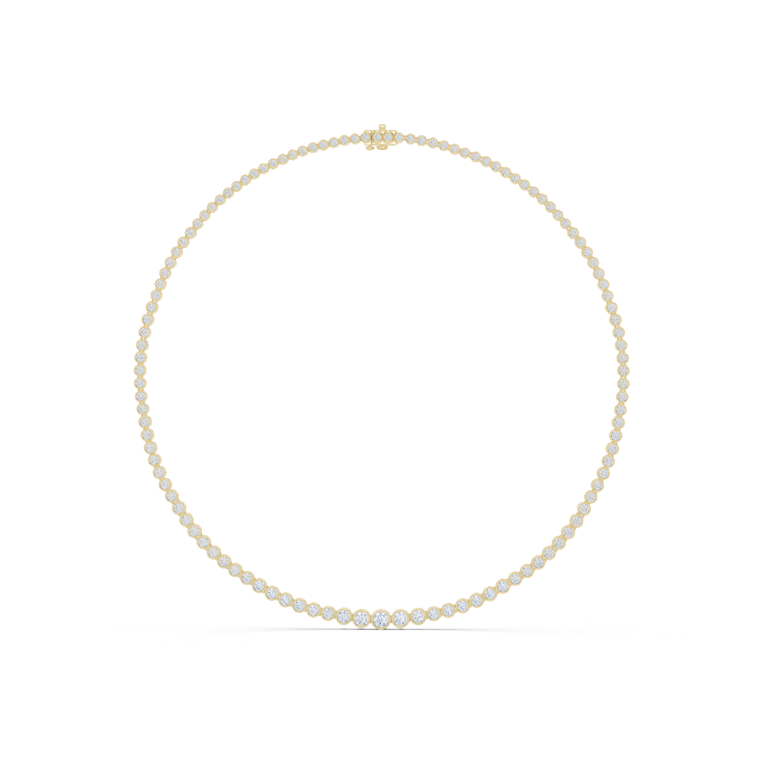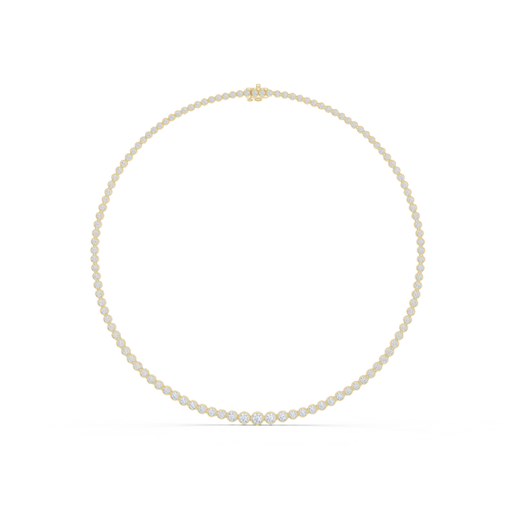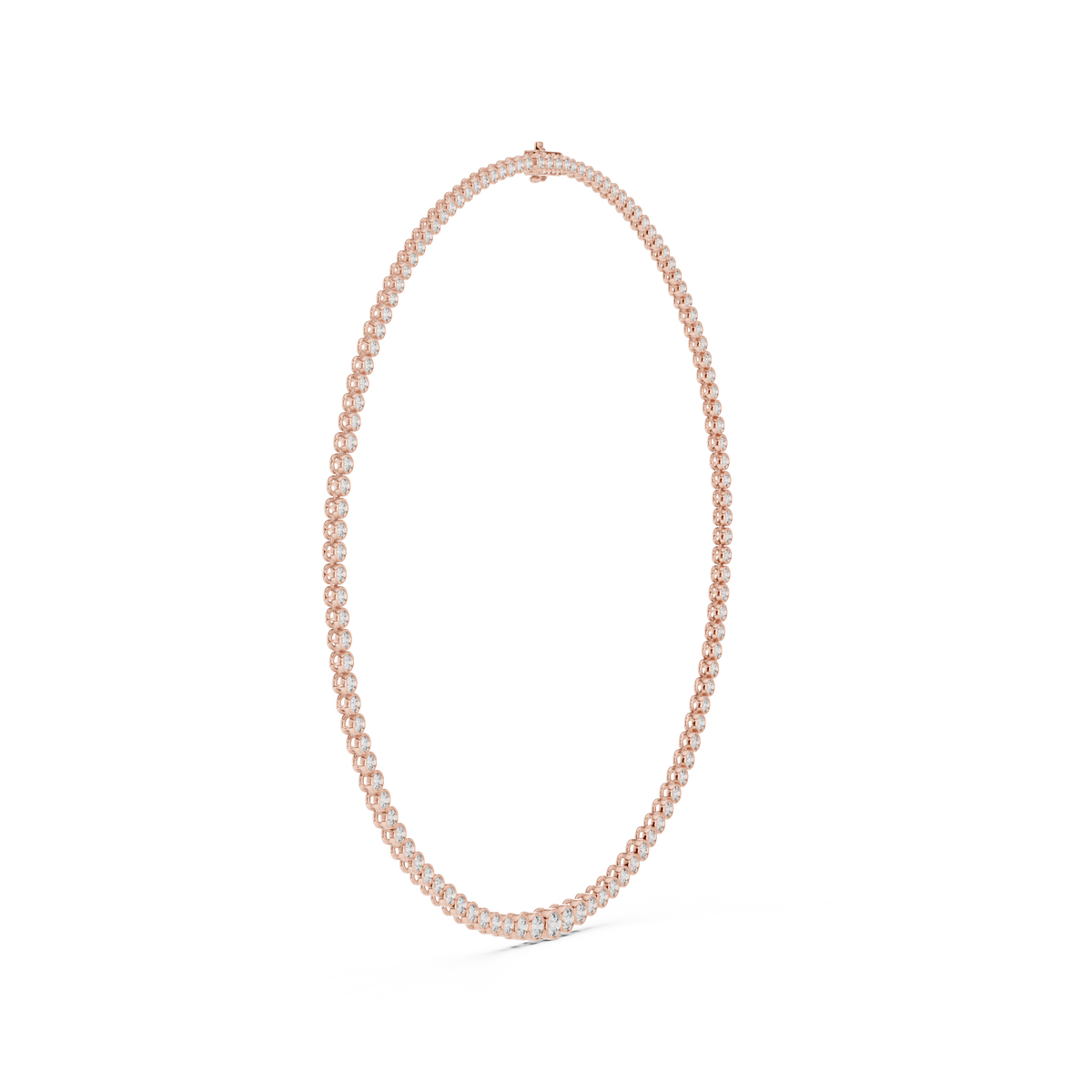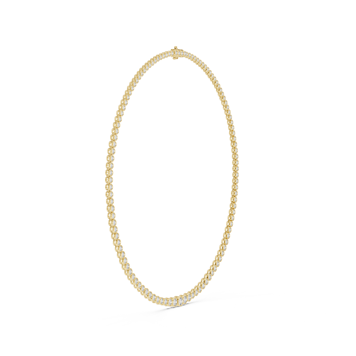 Handcrafted in 10K white gold with 7.26Ct round-cut lab-grown and natural diamonds. Tennis-style necklace, secured with spring ring clasp, length approx. 18 inches. Customize any piece in 10K, 14K, or 18K yellow, rose, or white gold, with your choice of lab-grown or natural diamonds where applicable.