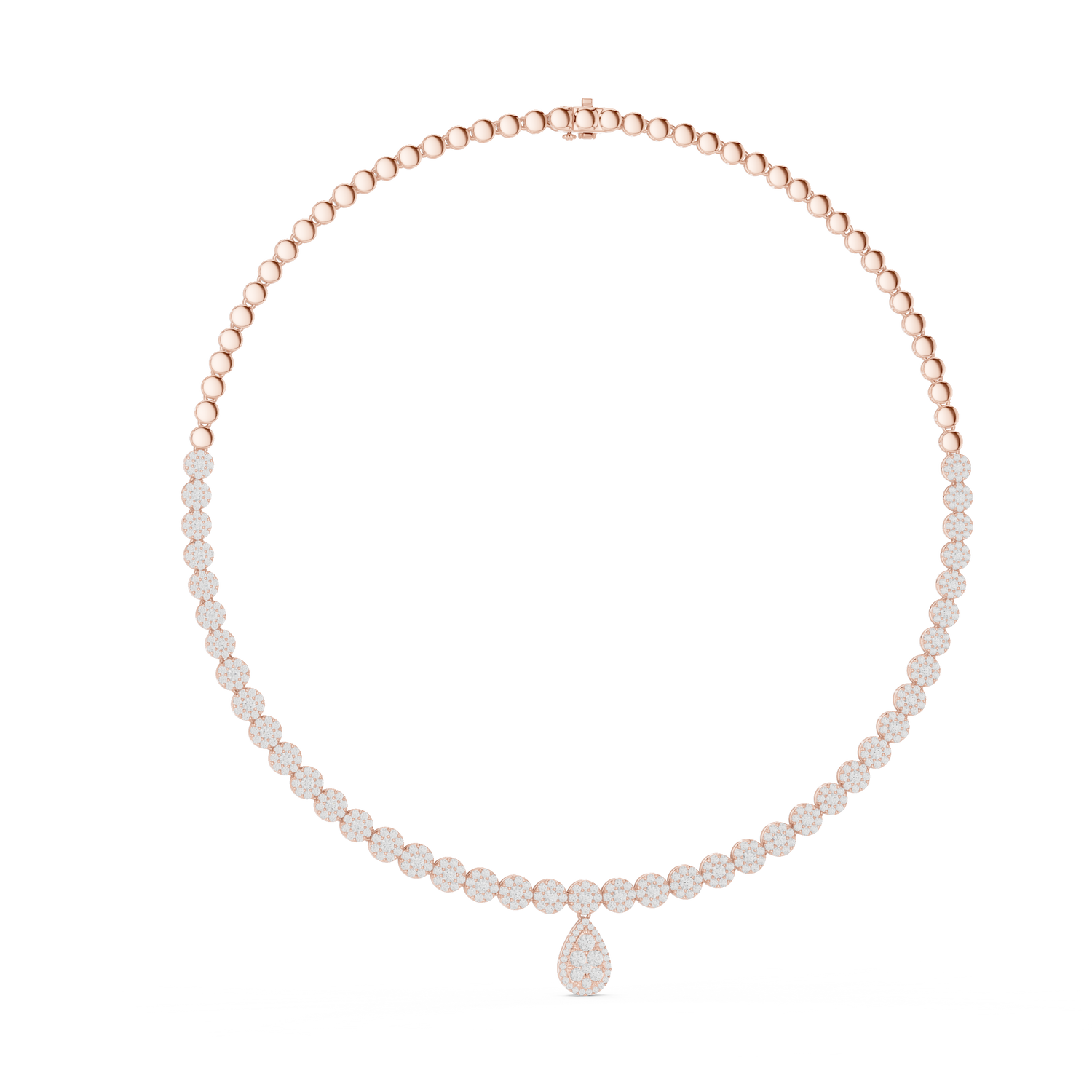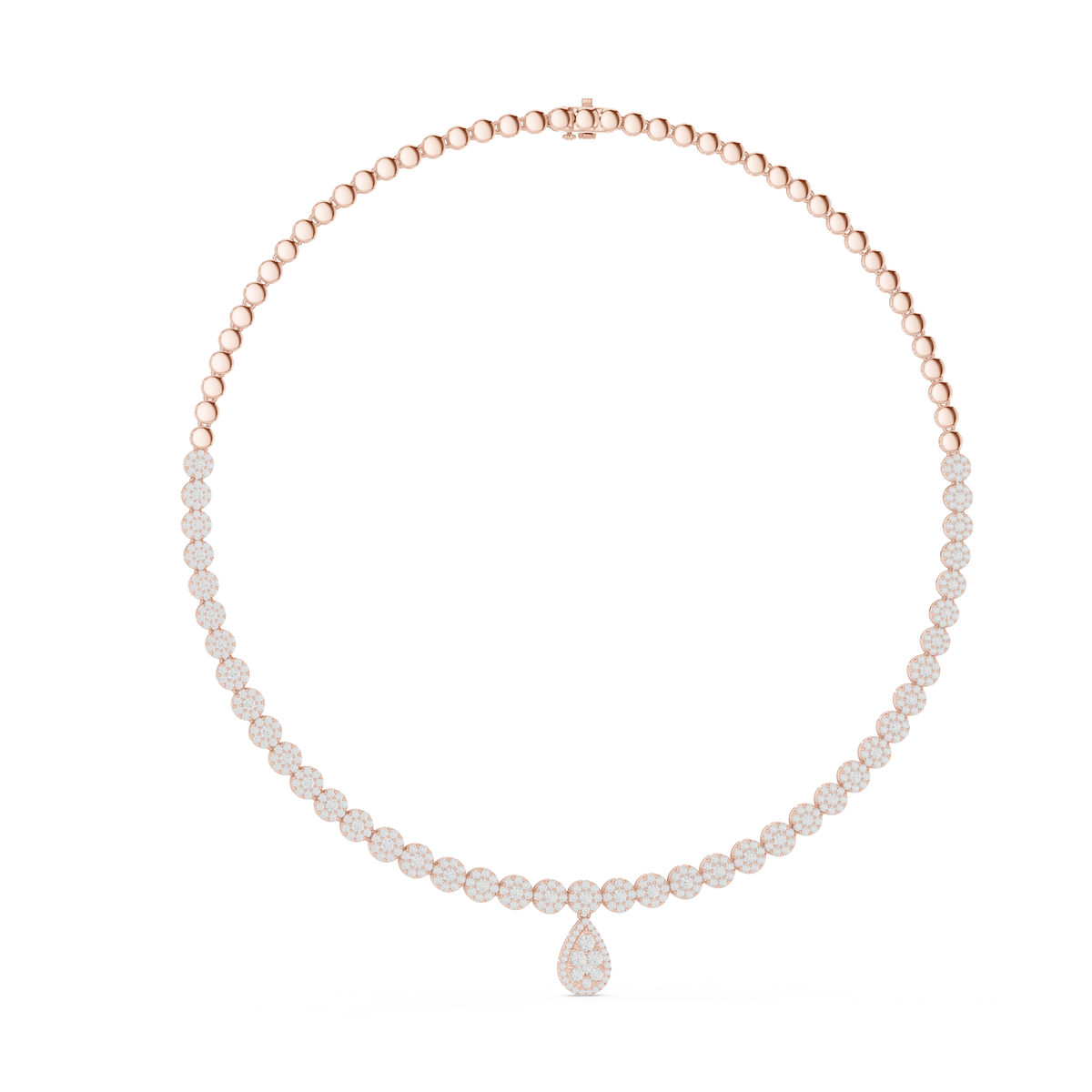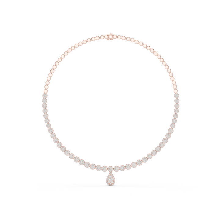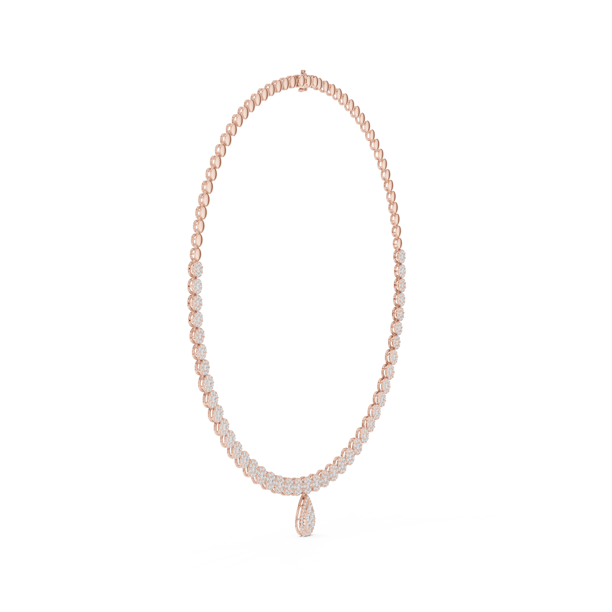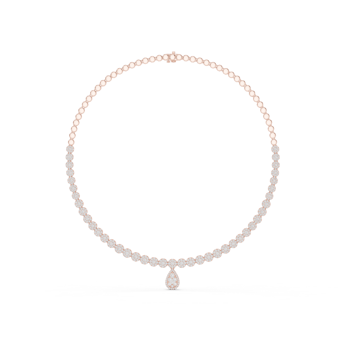 Handcrafted in 10K rose gold with 7.26Ct oval-cut lab-grown and natural diamonds. Necklace, secured with spring ring clasp, length approx. 18 inches. Customize any piece in 10K, 14K, or 18K yellow, rose, or white gold, with your choice of lab-grown or natural diamonds where applicable.