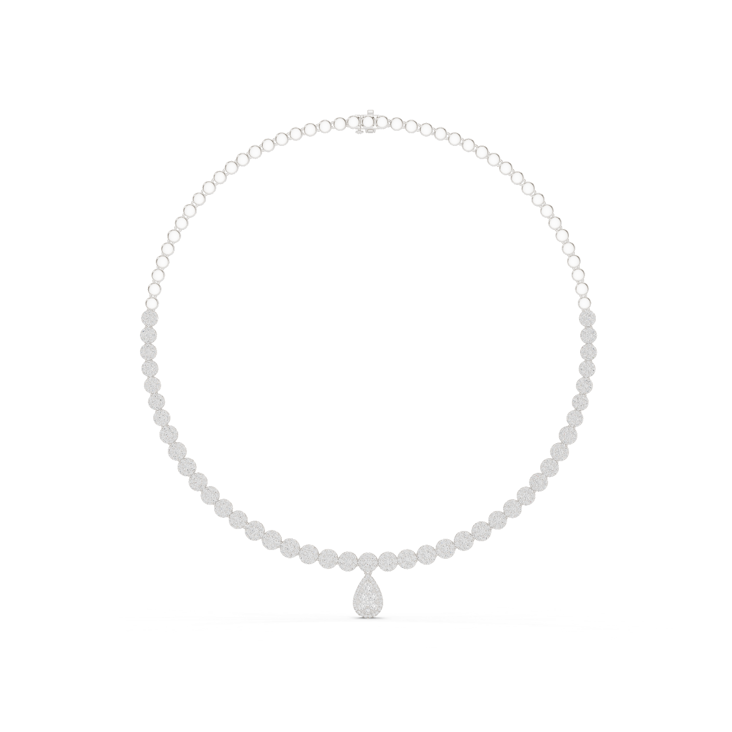 This Oval-Cut Lab-grown Diamond Necklace by High Carat combines sophistication and timeless glamour. Featuring 7.26Ct of lab-grown and natural diamonds set in 10K rose gold, the oval-cut stones create a luminous, elegant flow that enhances any ensemble. Perfect for weddings, graduation, or special occasions, this necklace embodies refined craftsmanship and high-carat brilliance. Its delicate design allows layering or standout wear alone, making it a versatile and cherished piece. A luxurious accessory, it celebrates ethical diamonds, polished style, and enduring elegance, offering a statement of sophistication and wearable artistry for modern women.