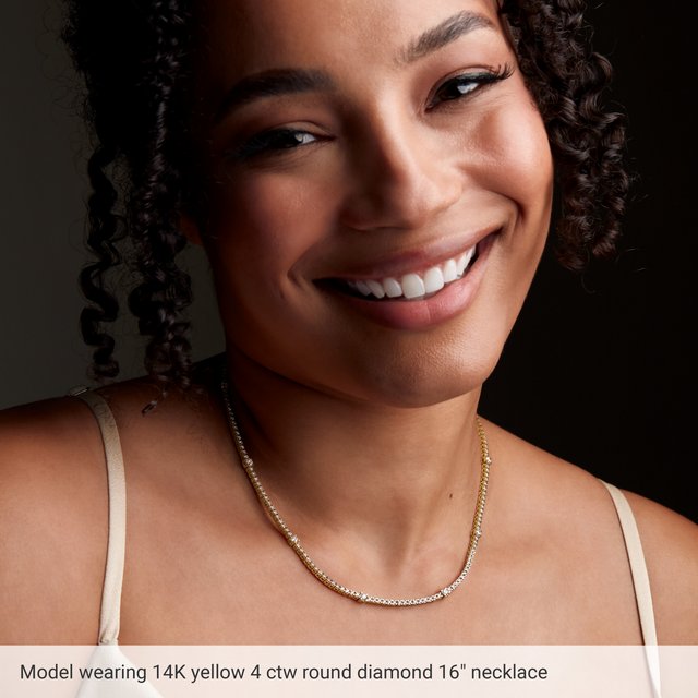 Handcrafted in 14K yellow gold with 4Ct lab-grown diamonds. Tennis-style line necklace, polished finish, length approx. 16 inches, 3.1 mm width. Customize any piece in 10K, 14K, or 18K yellow, rose, or white gold, with your choice of lab-grown or natural diamonds where applicable.