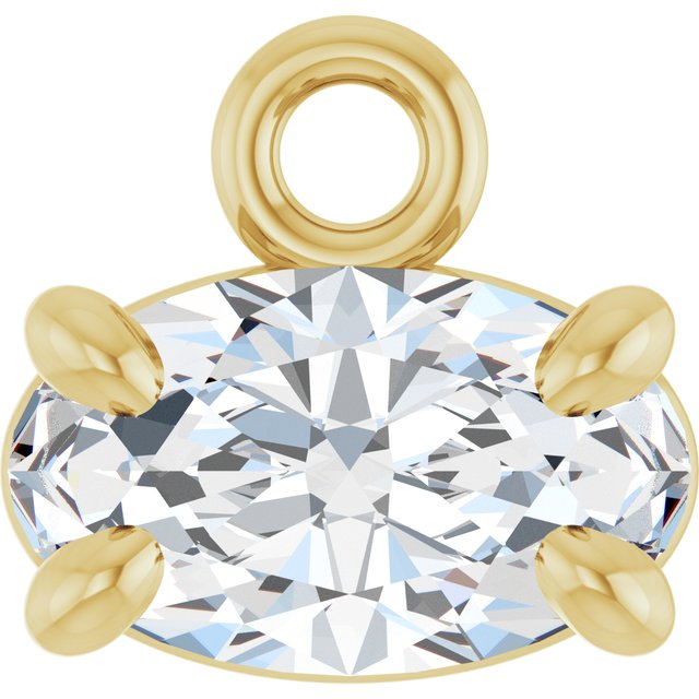 These dangler earrings are crafted from polished 14K yellow gold and feature an oval-cut Lab-Grown Diamond measuring 6 x 4 mm, with a total weight of 3/8 Ct (GHI color, SI clarity). The polished drop measures 6.1 x 5.8 mm. Customize any piece in 10K, 14K, or 18K yellow, rose, or white gold, with your choice of lab-grown or natural diamonds where applicable.