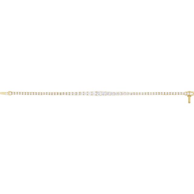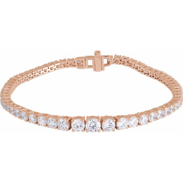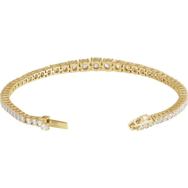 This line bracelet is crafted from polished 14K yellow gold and is set with 4.9 mm Lab-Grown Diamonds with a total weight of 6 Ctw (G-H color, SI1-SI2 clarity). The bracelet has a fixed length of 7 inches. Customize any piece in 10K, 14K, or 18K yellow, rose, or white gold, with your choice of lab-grown or natural diamonds where applicable.