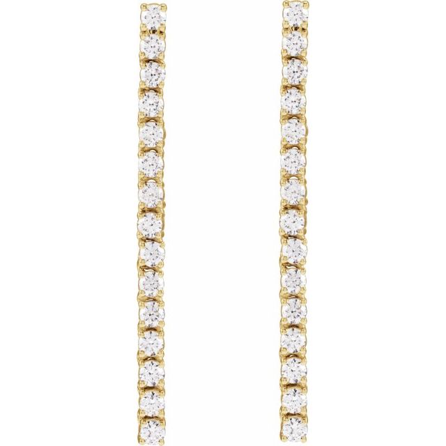 These drop earrings are crafted from polished 14K yellow gold and feature 1.8 mm Lab-Grown Diamonds with a total weight of 3/4 Ctw. They are secured with included friction backs. Customize any piece in 10K, 14K, or 18K yellow, rose, or white gold, with your choice of lab-grown or natural diamonds where applicable.