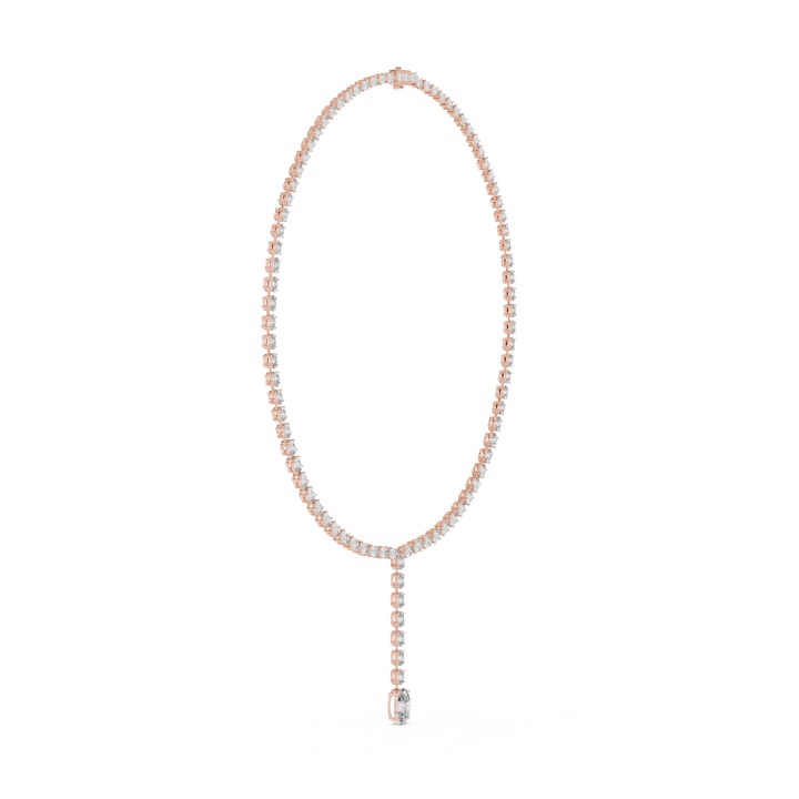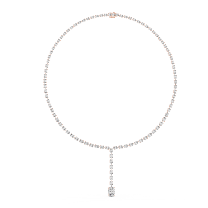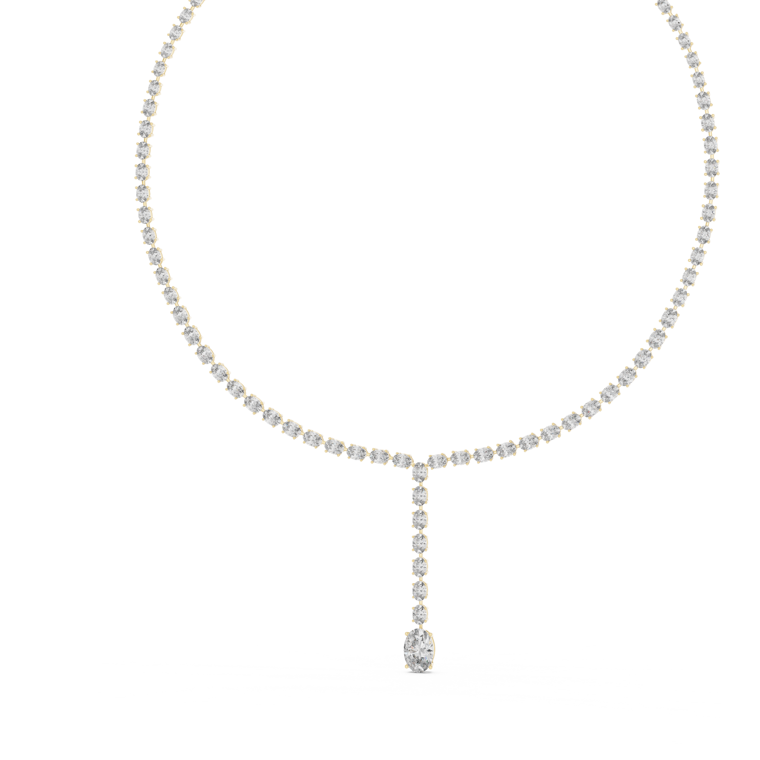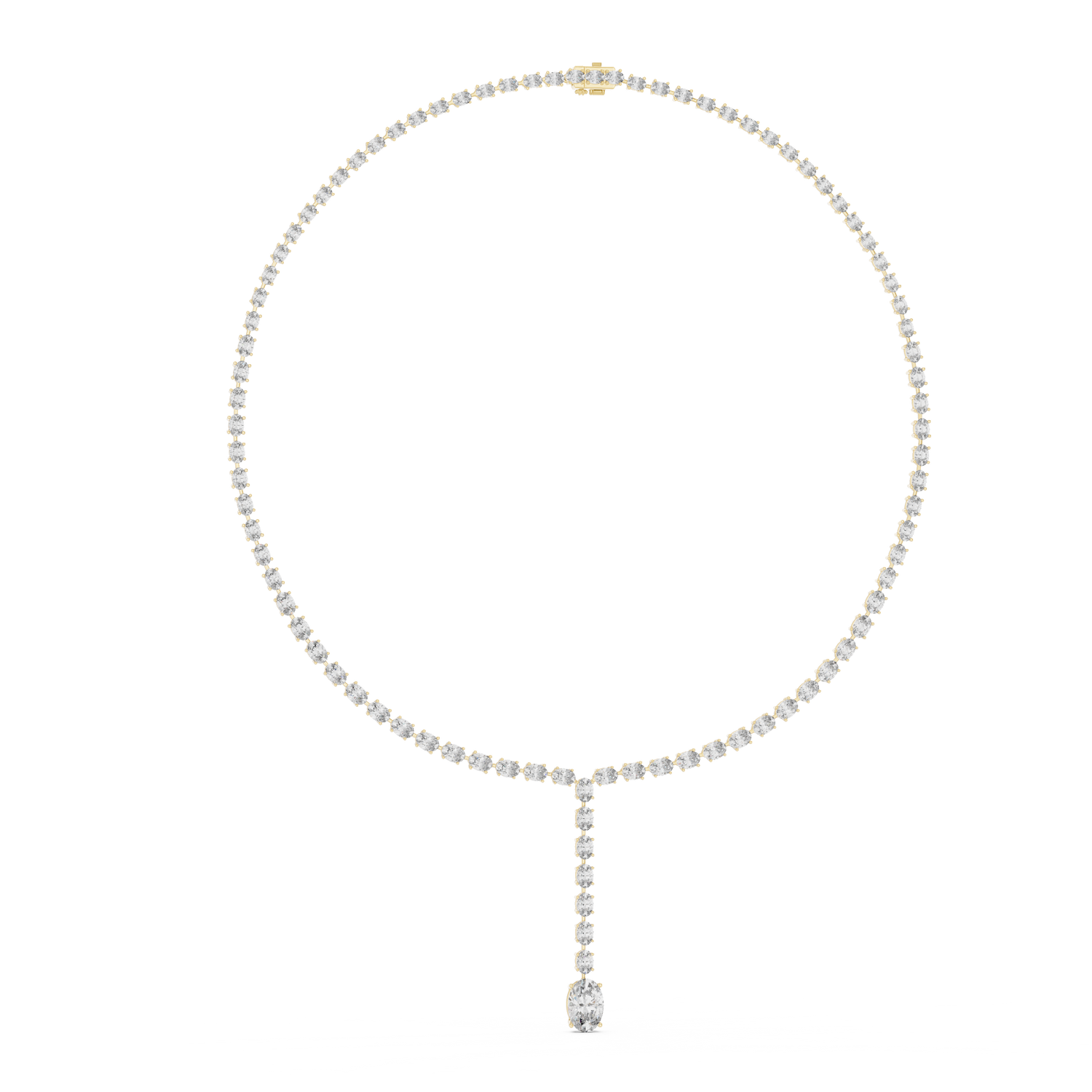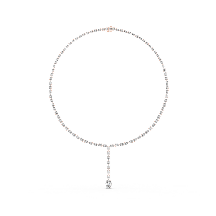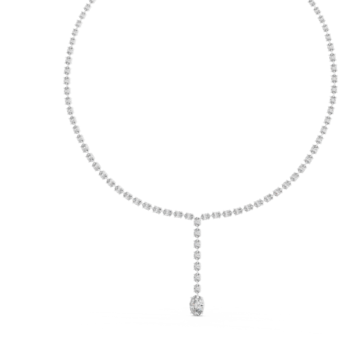 This tennis necklace is crafted from 10K white gold and features a 20.40 Ct oval Lab Grown Diamond in a solid gold setting. Customize any piece in 10K, 14K, or 18K yellow, rose, or white gold, with your choice of lab-grown or natural diamonds where applicable.