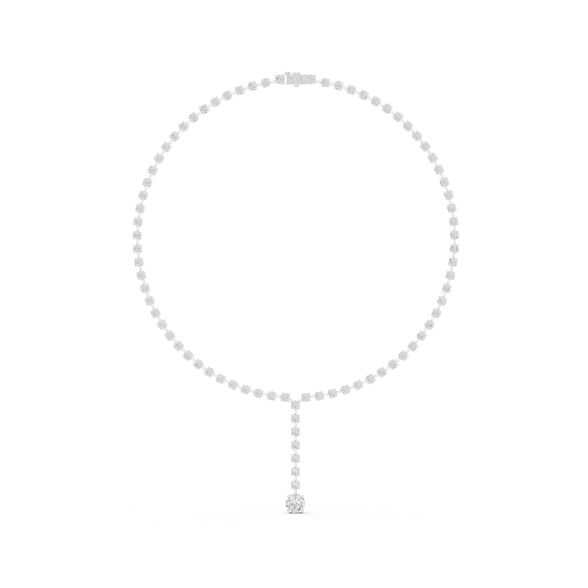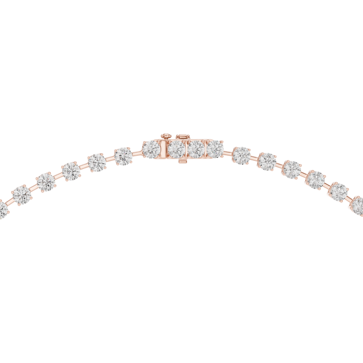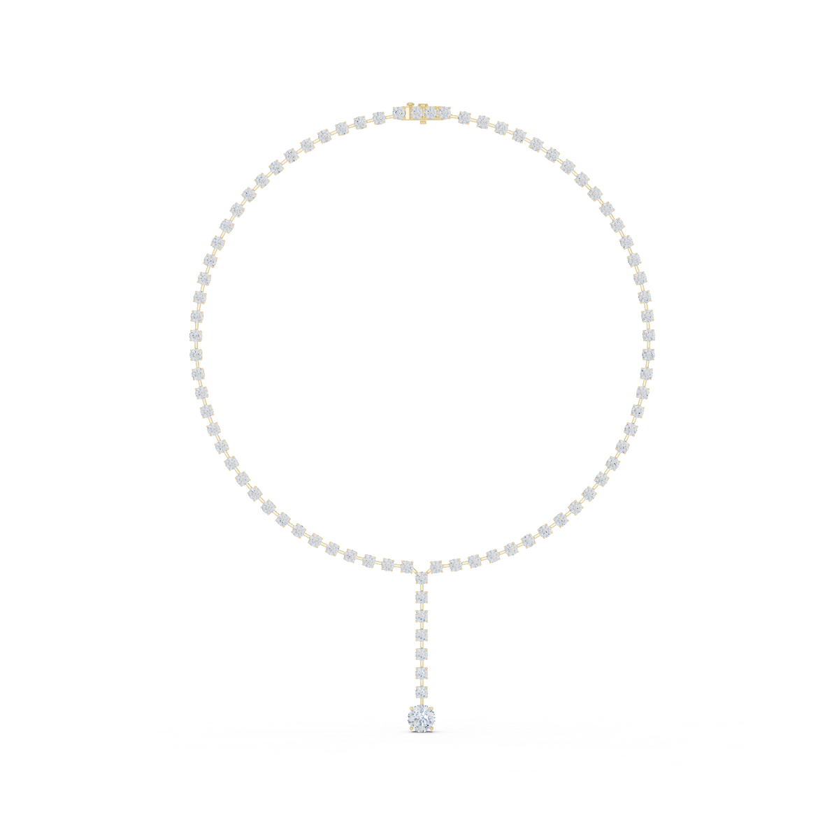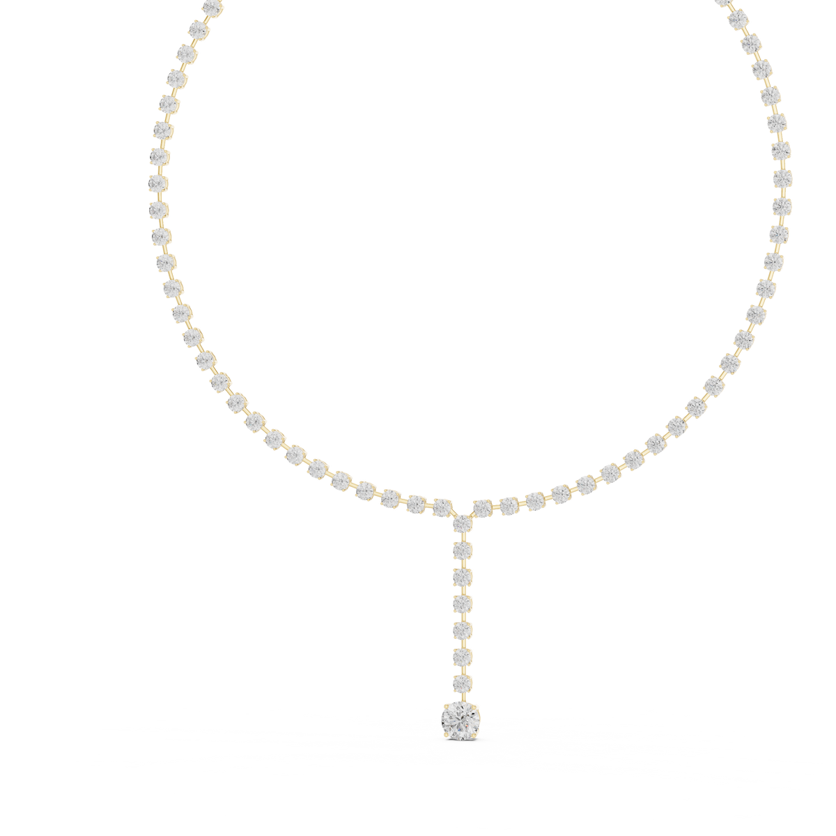 This tennis necklace is crafted from 10K yellow gold and features a 27.00 Ct round lab grown diamond set in solid 14K gold. Customize any piece in 10K, 14K, or 18K yellow, rose, or white gold, with your choice of lab-grown or natural diamonds where applicable.