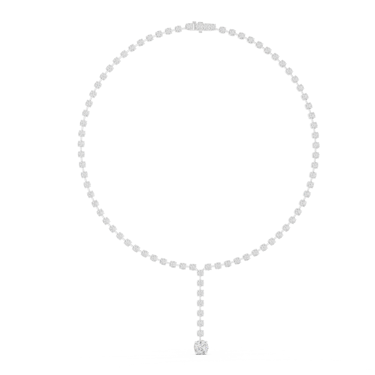 This Lab-grown Diamond Necklace by High Carat is an antique-inspired tennis necklace featuring a brilliant line of mixed lab-grown and natural diamonds. The substantial carat weight and timeless design in cool white gold exude sophistication and timeless charm. This piece is perfect for adding a touch of vintage elegance and dazzling light to any ensemble, making it a sophisticated, heirloom-quality accessory.